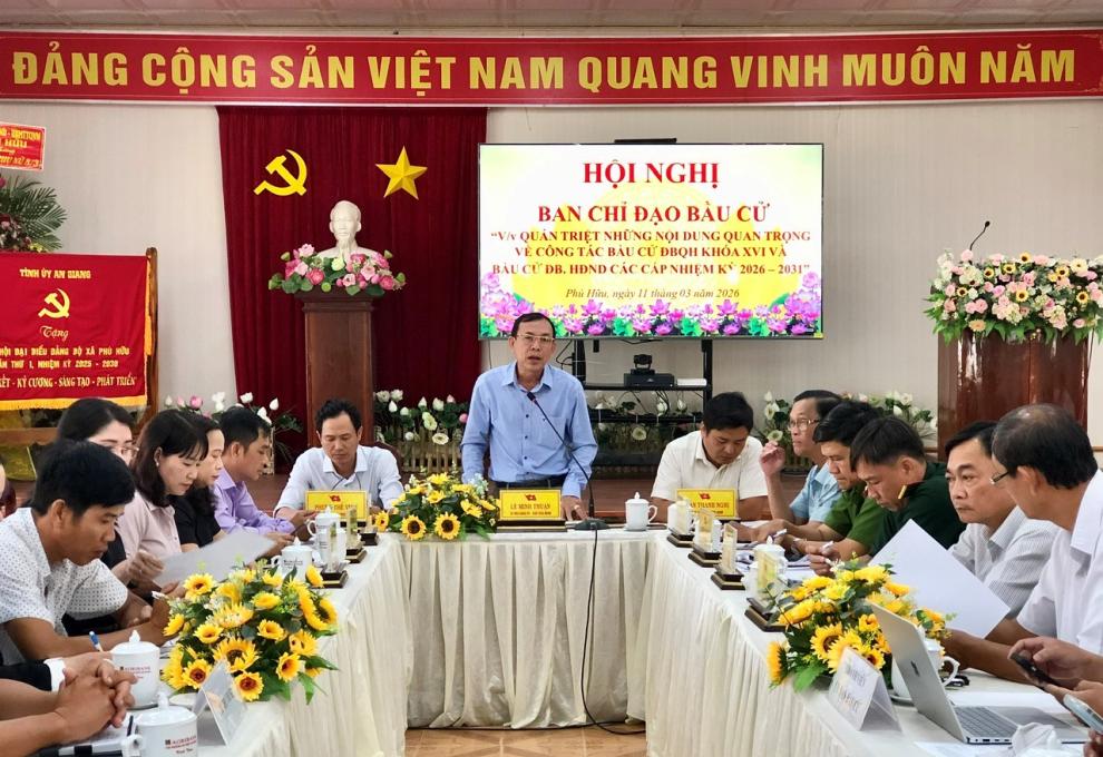 Chiều 10/3, Ban Bầu cử đại biểu HĐND tỉnh An Giang (Đơn vị bầu cử số 5) gồm các xã Phú Hữu, Nhơn Hội, Khánh Bình và Vĩnh Xương tổ chức hội nghị triển khai một số nội dung liên quan đến công tác bầu cử HĐND tỉnh. Hội nghị do ông Phùng Thế Vinh, Phó Bí thư Thường trực Đảng ủy xã Phú Hữu kiêm Trưởng Ban Bầu cử đại biểu HĐND tỉnh An Giang Đơn vị bầu cử số 5 chủ trì.