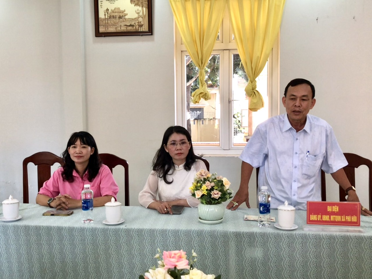 Bí thư Đảng ủy, Chủ tịch HĐND xã Phú Hữu Lê Minh Thuận phát biểu chúc Tết các đơn vị