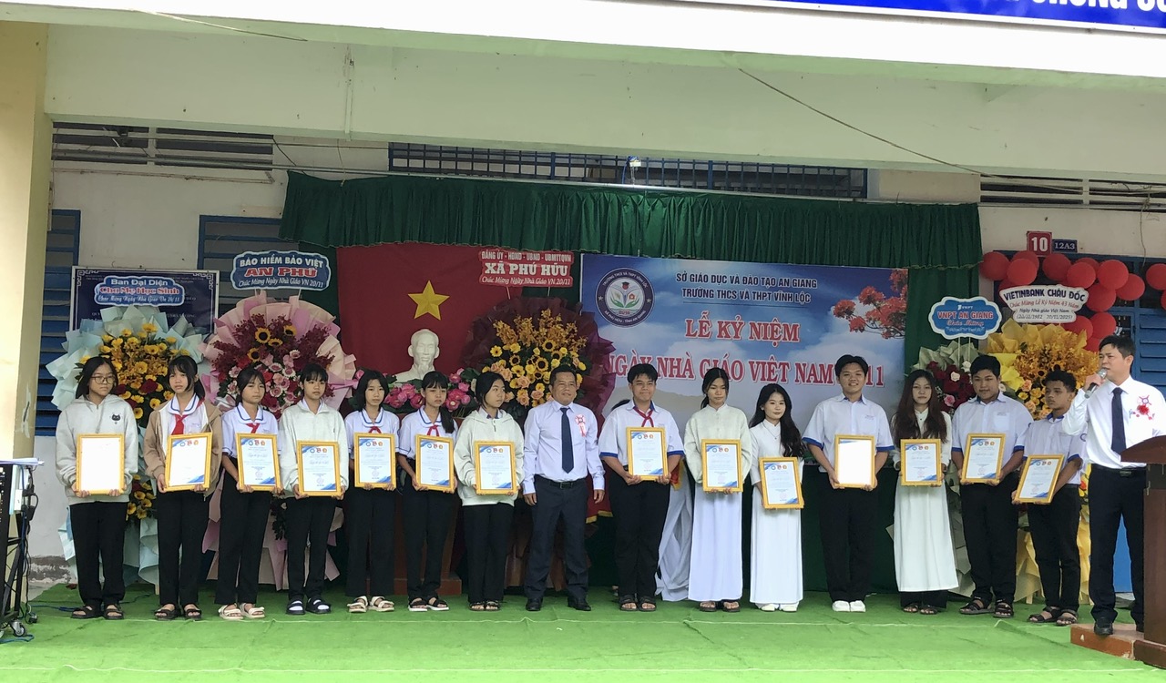 Dịp này, thầy Ngụy Văn Thông, Bí thư đoàn trường vinh dự nhận Bằng khen của Bộ Giáo dục và Đào tạo và Bằng khen Trương ương Hội Liên hiệp Thanh niên Việt Nam với thành tích Nhà giáo tiêu biểu tham gia chương trình chia sẻ cùng thầy cô năm 2025. Đồng thời, Ban Giám hiệu nhà trường cũng tổ chức khen thưởng cho nhiều cá nhân, tập thể giáo viên và học sinh có thành tích tiêu biểu các cuộc thi, hội thi, các hoạt động chào mừng Ngày Nhà giáo Việt Nam 20/11 do ngành cấp trên và nhà trường tổ chức./.