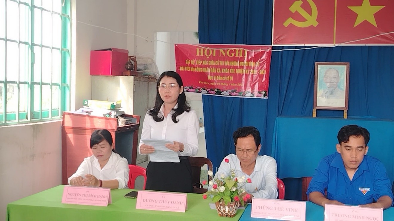 Các ứng cử viên đại biểu HĐND xã Phú Hữu, Đơn vị bầu cử số 1 tiếp xúc cử tri ấp Vĩnh Hưng và ấp Vĩnh Phát