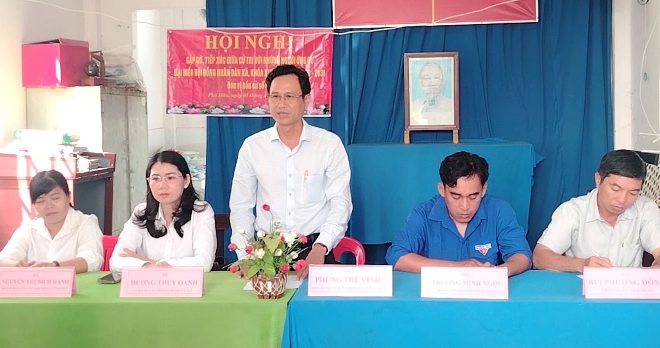 Ông Phùng Thế Vinh, Phó Bí thư Thường trực Đảng ủy xã Phú Hữu, ứng cử viên đại biểu HĐND xã Đơn vị bầu cử số 1 phát biểu