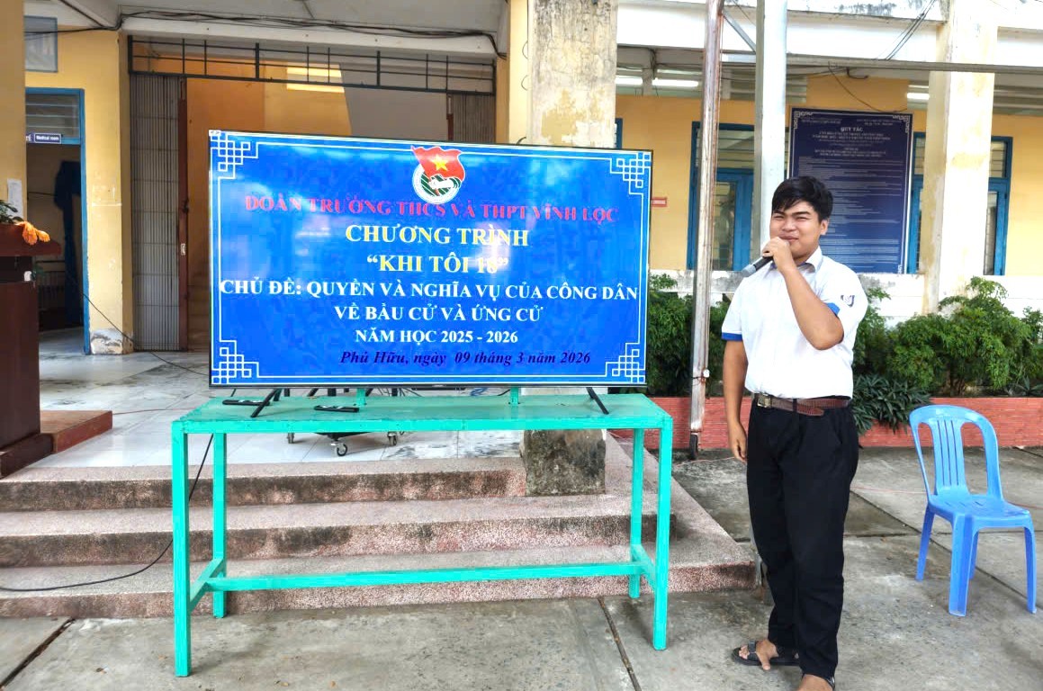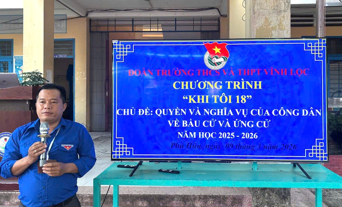 Nằm trong chuỗi các hoạt động hưởng ứng Tháng Thanh niên năm 2026, hướng tới Ngày hội bầu cử đại biểu Quốc hội khóa XVI và đại biểu Hội đồng nhân dân các cấp nhiệm kỳ 2026–2031, sáng 09/3, Đoàn Thanh niên Cộng sản Hồ Chí Minh xã Phú Hữu phối hợp Đoàn Thanh niên Trường THCS và THPT Vĩnh Lộc tổ chức Chương trình “Khi tôi 18” với chủ đề: “Quyền và nghĩa vụ của công dân về bầu cử và ứng cử”. Chương trình thu hút hơn 700 đoàn viên, thanh niên và học sinh của trường tham dự.