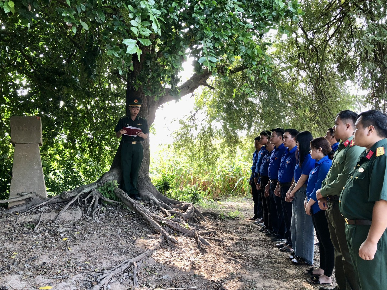 Tham gia chương trình, các cán bộ, đoàn viên, hội viên, chiến sĩ lực lượng vũ trang thực hiện nghi thức chào cờ, hát Quốc ca thể hiện lòng tự hào dân tộc và tinh thần yêu nước sâu sắc của tuổi trẻ xã nhà. Bên cạnh đó, đoàn đã tổ chức tham quan cột mốc biên giới, góp phần nâng cao nhận thức về chủ quyền lãnh thổ, trách nhiệm của tuổi trẻ trong việc bảo vệ biên cương Tổ quốc.