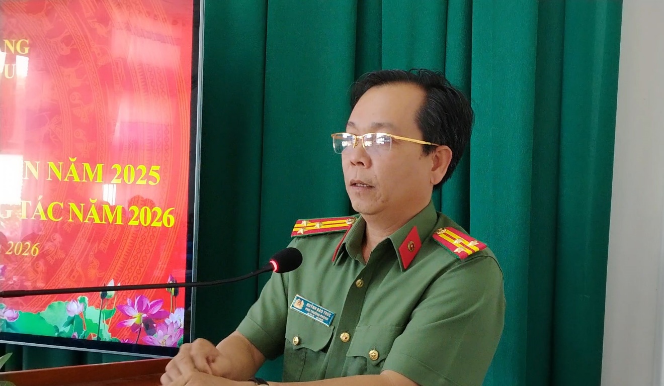 Thượng tá Huỳnh Bảo Trúc, Phó Trưởng phòng PA01-Công an tỉnh An Giang phát biểu định hướng Công an xã Phú Hữu thực hiện công tác trong năm 2026