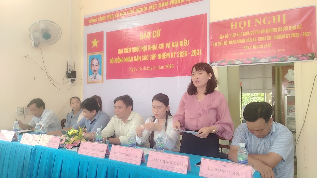 Tại buổi tiếp xúc, cử tri 2 ấp Phú Thạnh và Phú Hòa đã nghe giới thiệu tóm tắt tiểu sử các ứng cử viên đại biểu HĐND xã khóa XIII, nhiệm kỳ 2026 – 2031, Đơn vị bầu cử số 4 và nghe các ứng cử viên lần lượt trình bày dự kiến chương trình hành động nếu được cử tri tín nhiệm bầu làm đại biểu HĐND xã.