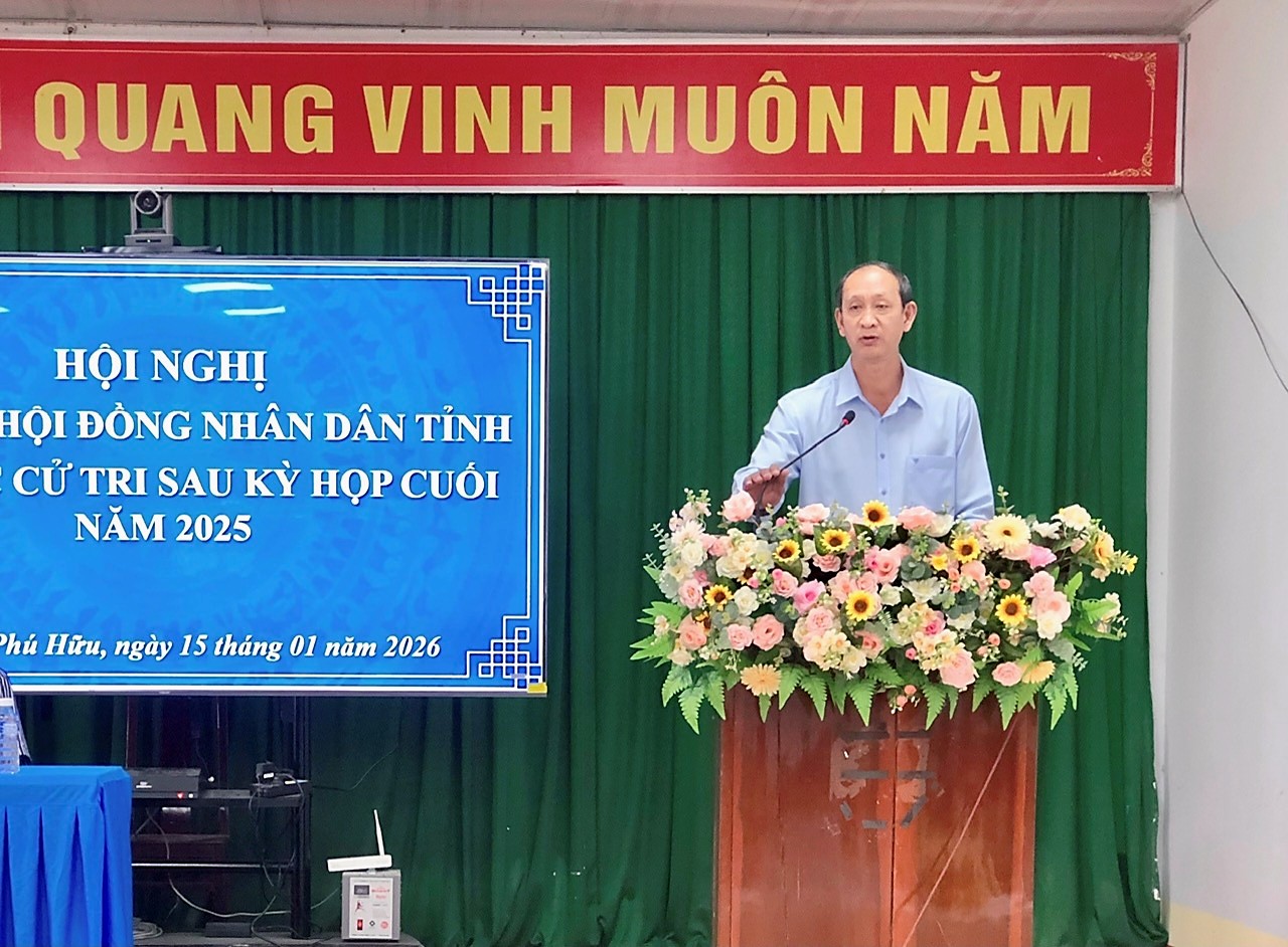 Chiều 15-1, Tổ đại biểu số 09 HĐND tỉnh An Giang do ông Lê Minh Thuận, Bí thư Đảng ủy, Chủ tịch UBND xã Phú Hữu làm tổ trưởng có buổi tiếp xúc với hơn 70 cử tri xã Phú Hữu sau kỳ họp cuối năm 2025. Tham dự buổi tiếp xúc còn có bà Nguyễn Thị Kim Uyên, đại biểu HDND tỉnh cùng lãnh đạo Đảng ủy – HĐND – UBND - UBMTTQVN xã Phú Hữu.