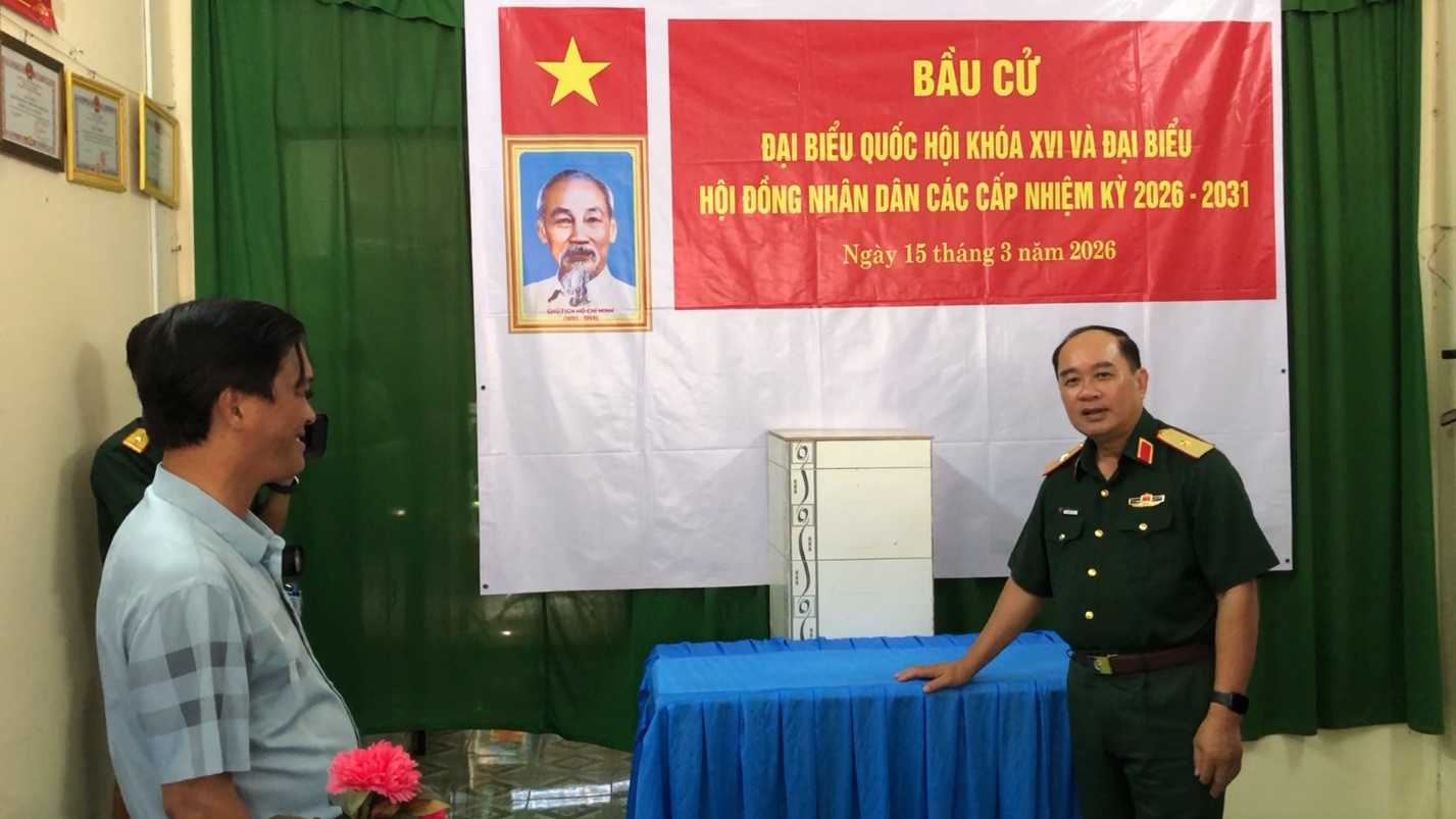 Kiểm tra thực tế tại Khu vực bỏ phiếu số 16 (văn phòng ấp Phú Lợi), Thiếu tướng Nguyễn Văn Ngành, Ủy viên Ban Thường vụ Tỉnh ủy, Ủy viên Ủy ban bầu cử tỉnh, Phó Tiểu ban An ninh, trật tự và Y tế, Chỉ huy trưởng Bộ CHQS tỉnh ghi nhận và đánh giá cao công tác chuẩn bị bầu cử của địa phương từ khâu trang trí khánh tiết đến cơ sở vật chất, thiết bị phục vụ bầu cử cũng như cách bố trí khu vực niêm yết danh sách cử tri, tiểu sử tóm tắt người ứng cử, phòng kín, hòm phiếu… để cử tri đến thực hiện trách nhiệm, quyền làm chủ của mình một cách thuận tiện, nhanh chóng và bình đẳng.