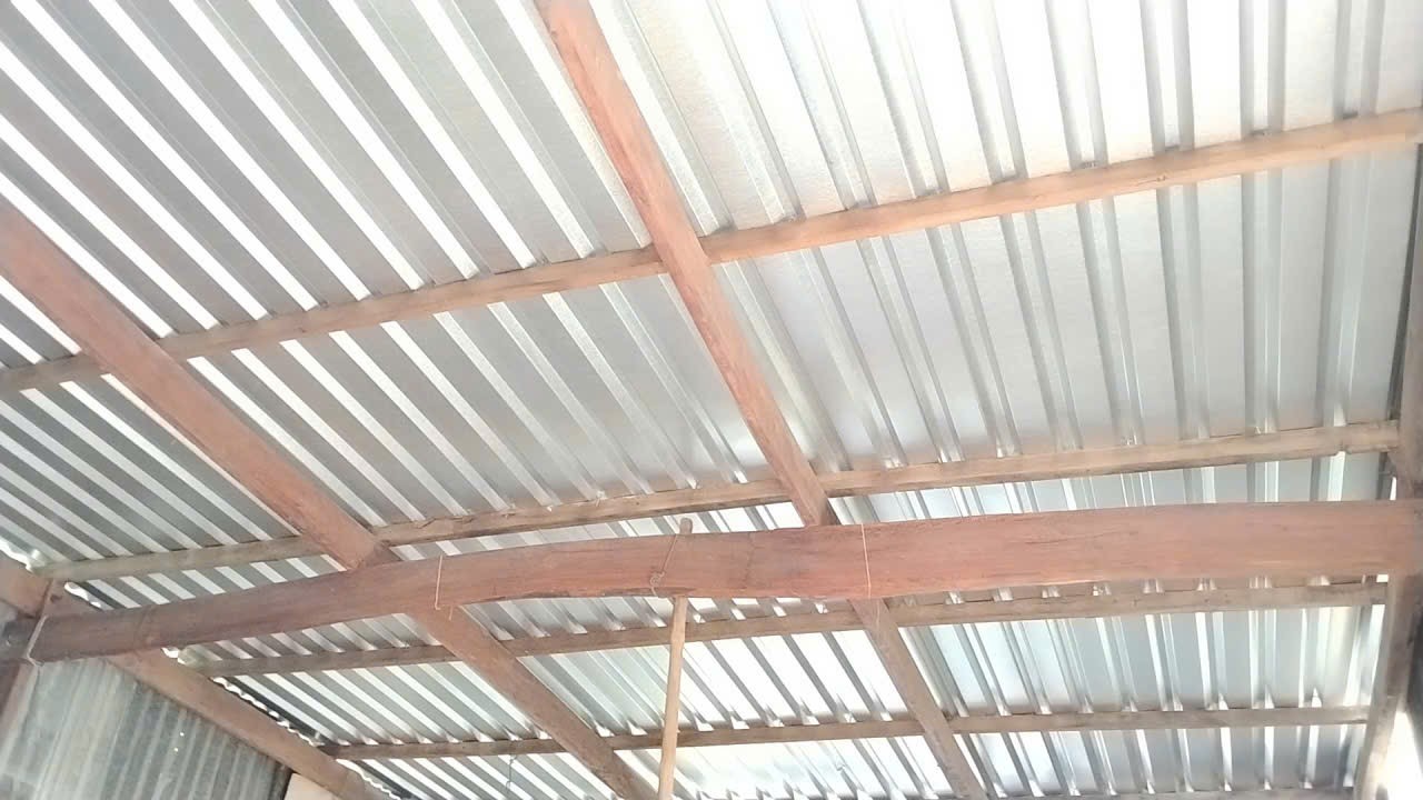 Một phần mái nhà của gia đình được lợp tôn mới