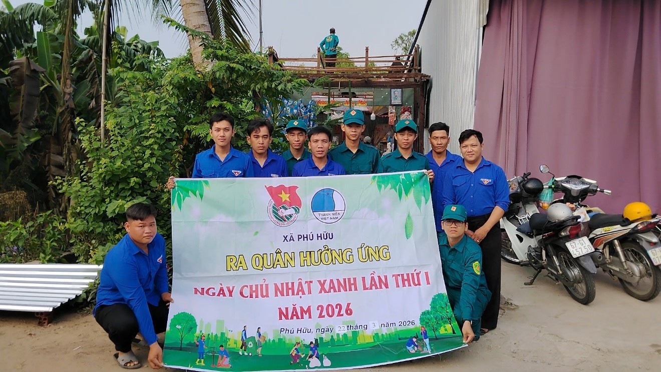 Ngày 22/3, Đoàn Thanh niên Cộng sản Hồ Chí Minh xã Phú Hữu ra quân hưởng ứng “Ngày Chủ nhật xanh” lần thứ I năm 2026.