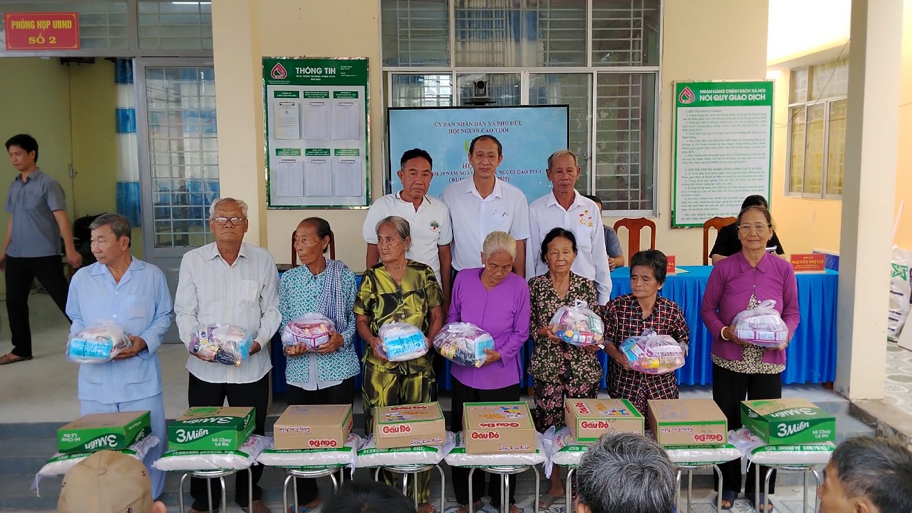 Dịp này, Hội Người cao tuổi xã Phú Hữu đã vận động trao tặng 62 phần quà cho hội viên Người cao tuổi có hoàn cảnh khó khăn, mỗi phần trị giá khoảng 400 ngàn đồng gồm: gạo, mì và nhu yếu phẩm.