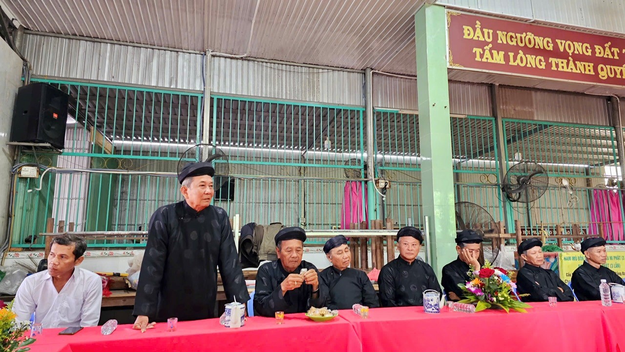 Ông Trần Văn Phố, Trưởng Ban Trị sự PGHH xã Phú Hữu báo cáo tình hình hoạt động tại đơn vị