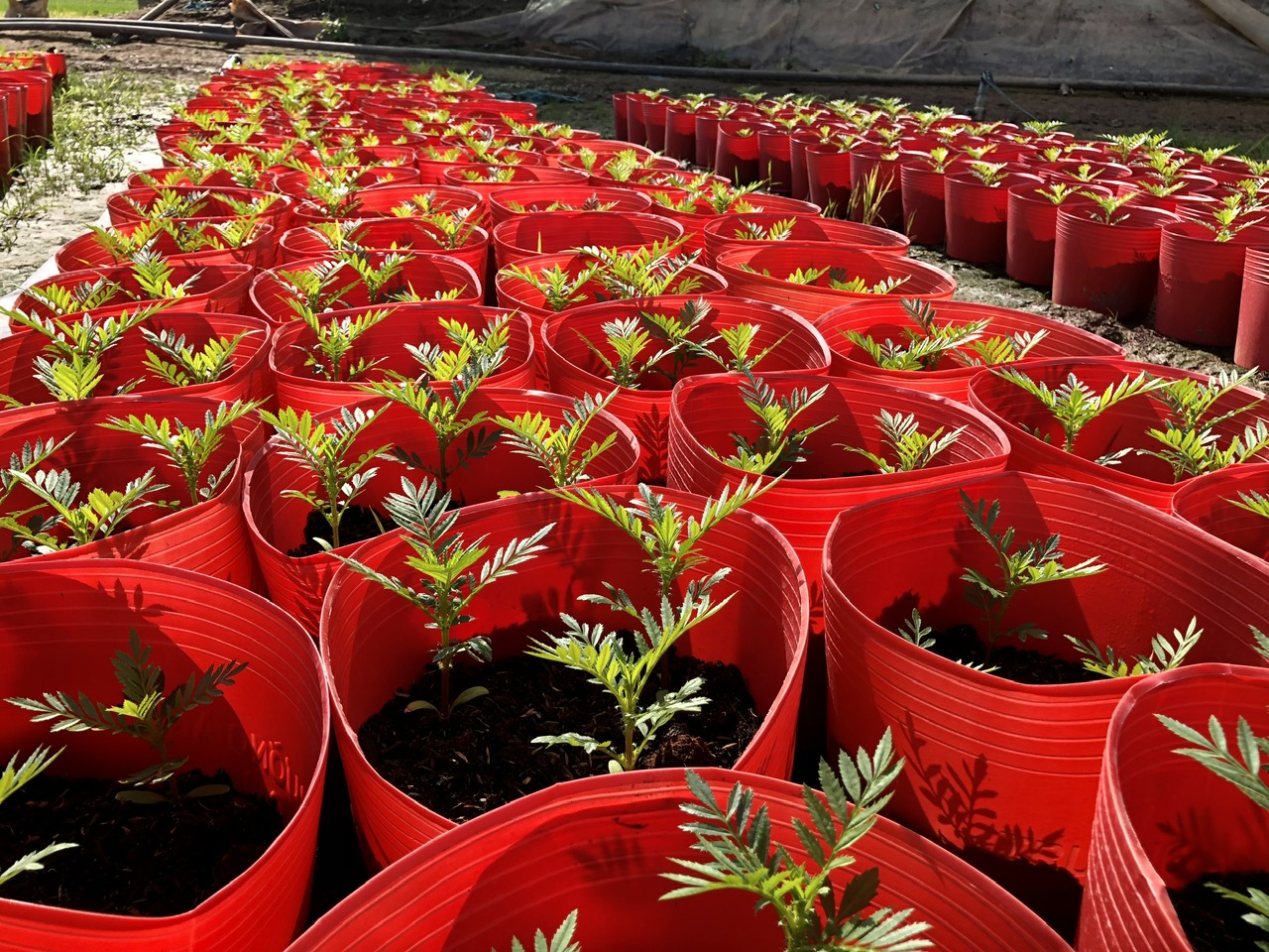 Anh Khánh chia sẻ thêm: Thời điểm xuống giống vạn thọ hàng năm là khoảng 25 tháng 10 âm lịch và thời gian sinh trưởng, chăm sóc đến khoảng 80 ngày sau là trổ hoa và bắt đầu bán ra thị trường Tết. Nói về kỹ thuật trồng hoa trong chậu bán dịp Tết, anh Khánh cho biết thêm: Đối với các loại hoa nói chung và cây vạn thọ nói riêng cũng dễ chăm sóc, quan trọng là khâu xử lý giá thể (phân trộn) ngay từ ban đầu, đây là yếu tố quyết định sự phát triển bộ rễ và cung cấp dinh dưỡng tốt cho cây. Ngoài ra, cũng cần phải thường xuyên theo dõi để bón phân, phun thuốc đúng thời điểm cũng như phòng tránh sâu bệnh một cách kịp thời.