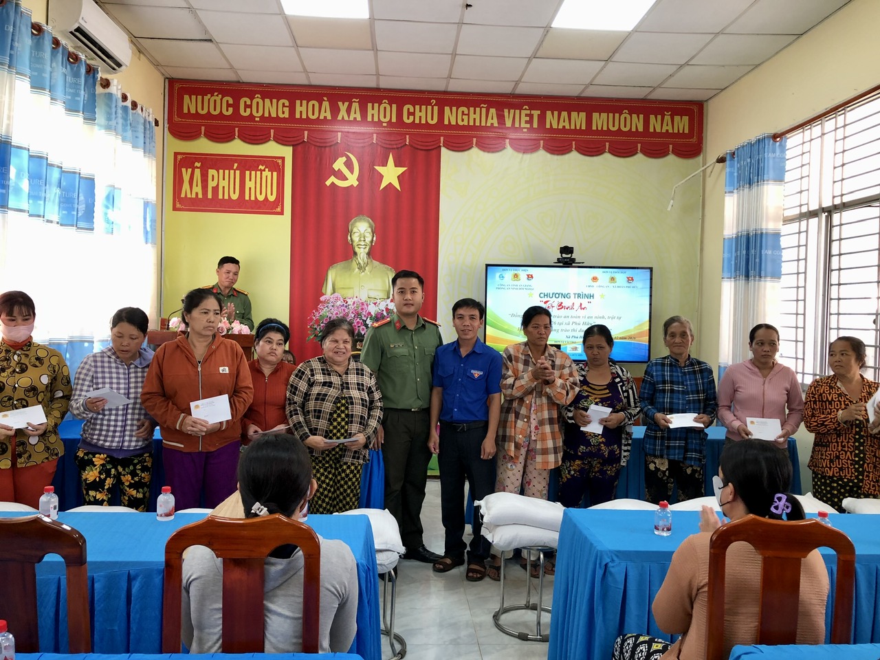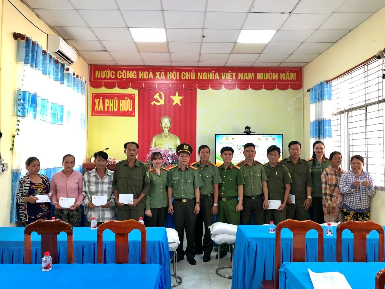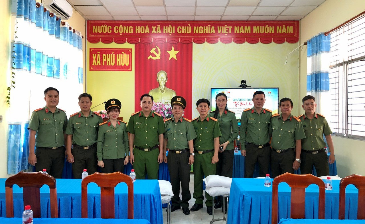 Chi đoàn Phòng An ninh đối ngoại Công an tỉnh tặng quà cho Đoàn TNCS Hồ Chí Minh xã Phú Hữu