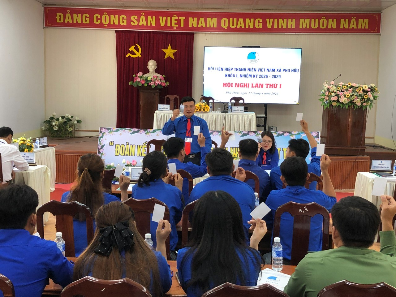 Sáng 22/4, Hội Liên hiệp Thanh niên (LHTN) Việt Nam xã Phú Hữu long trọng tổ chức Đại hội đại biểu lần thứ I, nhiệm kỳ 2026 – 2029 với phương châm “Đoàn kết – Xung kích – Trách nhiệm – Phát triển”. Đồng chí Phùng Thế Vinh, Phó Bí thư Thường trực Đảng uỷ xã đến dự và chỉ đạo đại hội.