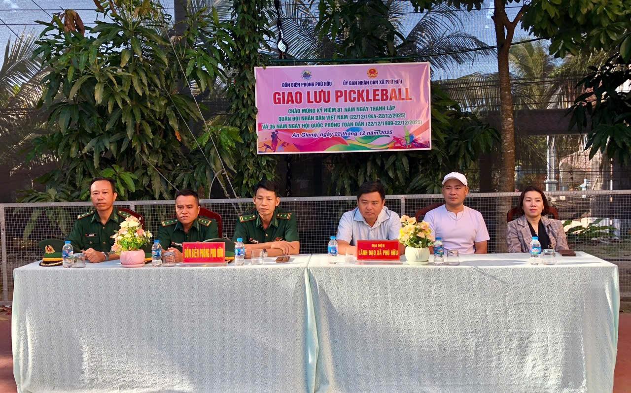 Hòa trong không khí thi đua sôi nổi chào mừng kỷ niệm 81 năm Ngày thành lập Quân đội Nhân dân Việt Nam (22/12/1944- 22/12/2025) và 36 năm Ngày hội Quốc phòng toàn dân (22/12/1989- 22/12/2025), sáng 22/12, tại Đồn Biên phòng Phú Hữu, UBND xã Phú Hữu phối hợp Đồn Biên phòng Phú Hữu tổ chức buổi giao lưu thể thao môn Pickleball với sự tham gia của đông đảo cán bộ, công chức, viên chức, người lao động trực thuộc UBND xã và cán bộ, chiến sĩ Đồn Biên phòng Phú Hữu.