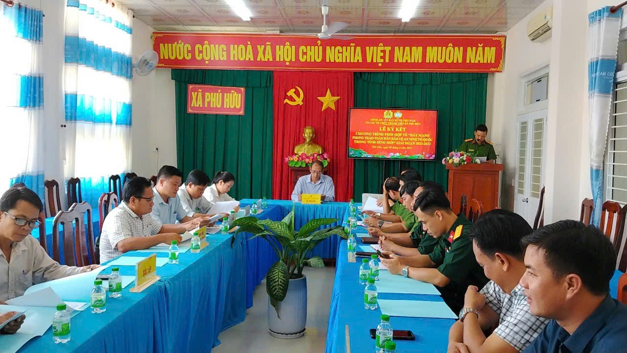 Phú Hữu tổ chức lễ ký kết Chương trình phối hợp về “Đẩy mạnh phong trào Toàn dân bảo vệ an ninh Tổ quốc trong tình hình mới” giai đoạn 2023-2033