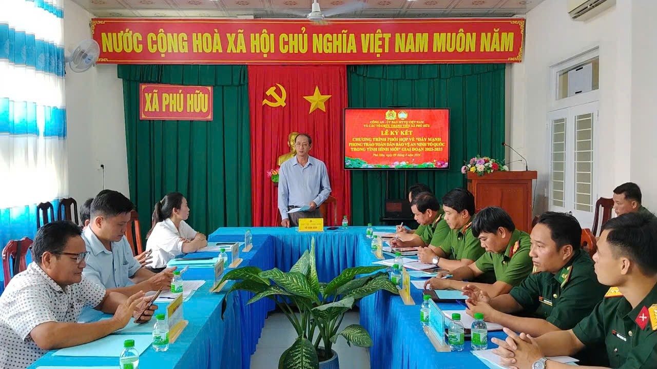 Phát biểu tại buổi lễ, Phó Chủ tịch UBND xã Phú Hữu Võ Văn Dừa khẳng định, việc ký kết Chương trình phối hợp giữa Công an xã với Ủy ban MTTQ Việt Nam xã và các tổ chức thành viên là nhiệm vụ quan trọng nhằm tiếp tục nâng cao hiệu quả phong trào “Toàn dân bảo vệ an ninh Tổ quốc”, phát huy sức mạnh khối đại đoàn kết toàn dân, góp phần xây dựng quê hương Phú Hữu ngày càng phát triển, văn minh. Trên cơ sở đó, Phó Chủ tịch UBND xã yêu cầu các đơn vị liên quan tổ chức triển khai nghiêm túc Chương trình phối hợp; tăng cường công tác phối hợp, kiểm tra, giám sát, kịp thời sơ kết, tổng kết, biểu dương các tập thể, cá nhân có thành tích, qua đó góp phần giữ vững ổn định an ninh, trật tự, phục vụ hiệu quả nhiệm vụ phát triển kinh tế – xã hội của địa phương.