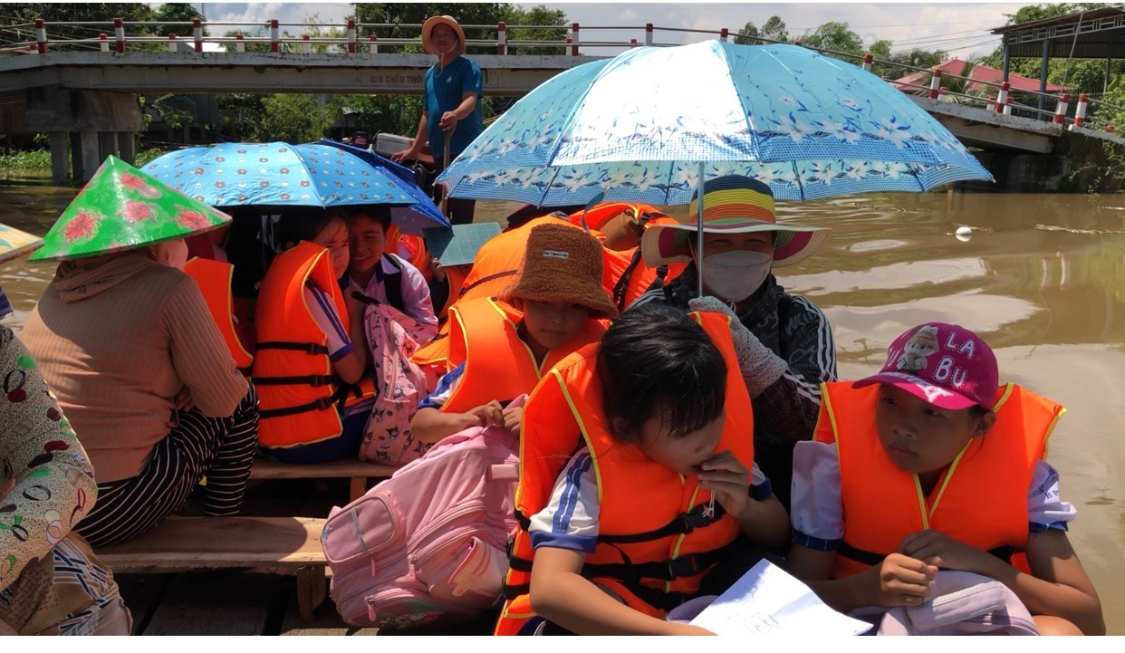 Giữa mênh mông nước lũ, chỉ có tiếng máy nổ lạch tạch từ động cơ chiếc chẹt của chú Nguyễn Văn Tâm, ấp Phú Hiệp đang cầm lái đưa học sinh về nhà sau một buổi học, các em như đã quen với cảnh này nên không hề sợ mà chỉ ngồi im, tay bám chặt vào phương tiện. Trên tuyến kênh, nhiều xuồng nhỏ của phụ huynh tự đưa rước con em mình đi học về, xa xa ngoài cánh đồng là mấy chiếc xuồng, vỏ lãi của người dân đánh bắt cá mùa nước lũ. Và cứ thế, chiếc chẹt mỗi ngày 6 chuyến đi về, với mong muốn đưa các em học sinh đến trường an toàn và không phải nghỉ học vì lũ.