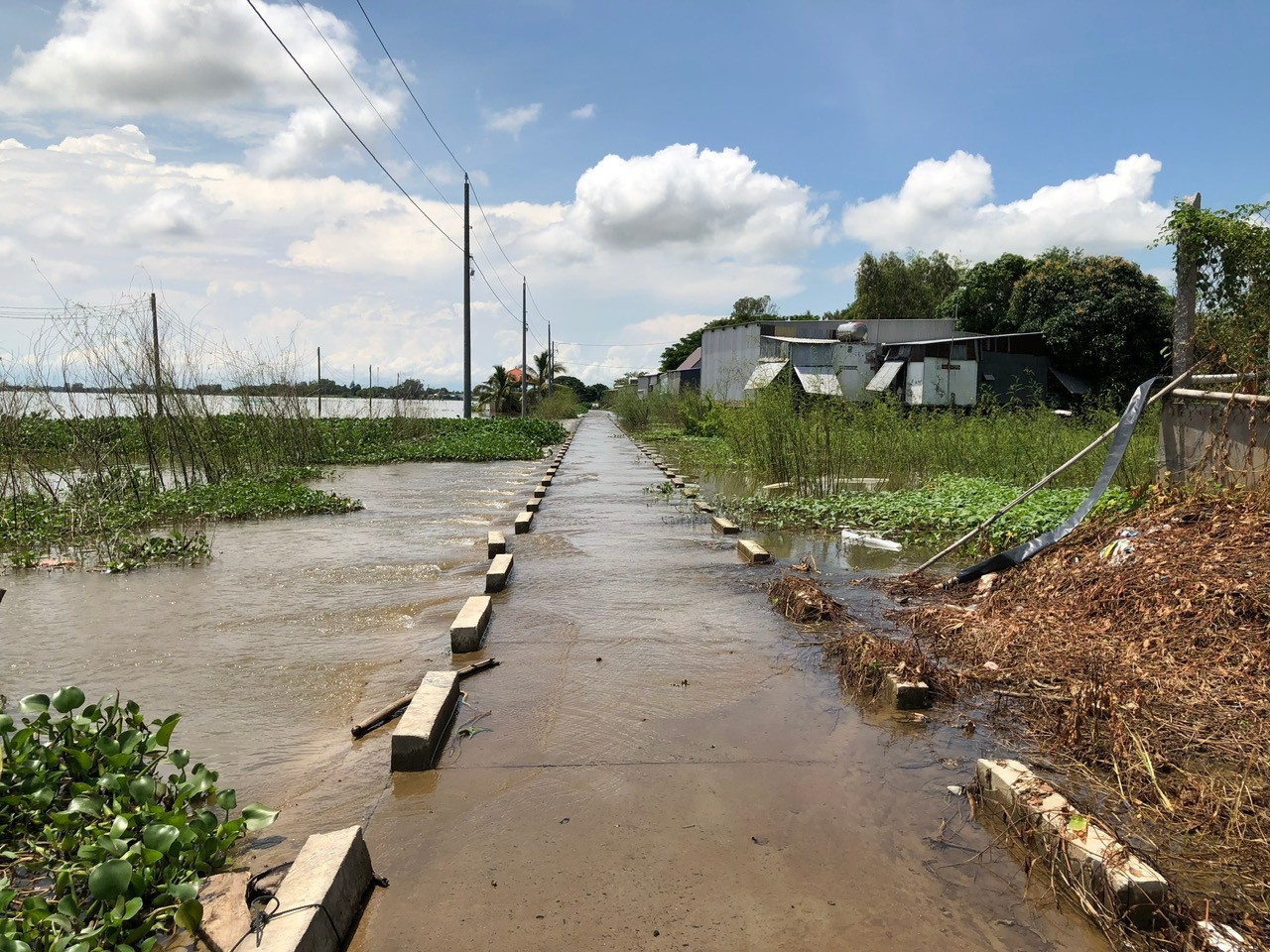 Nước lũ dâng cao làm ngập đoạn tuyến WB9 Bảy Trúc, xã Phú Hữu