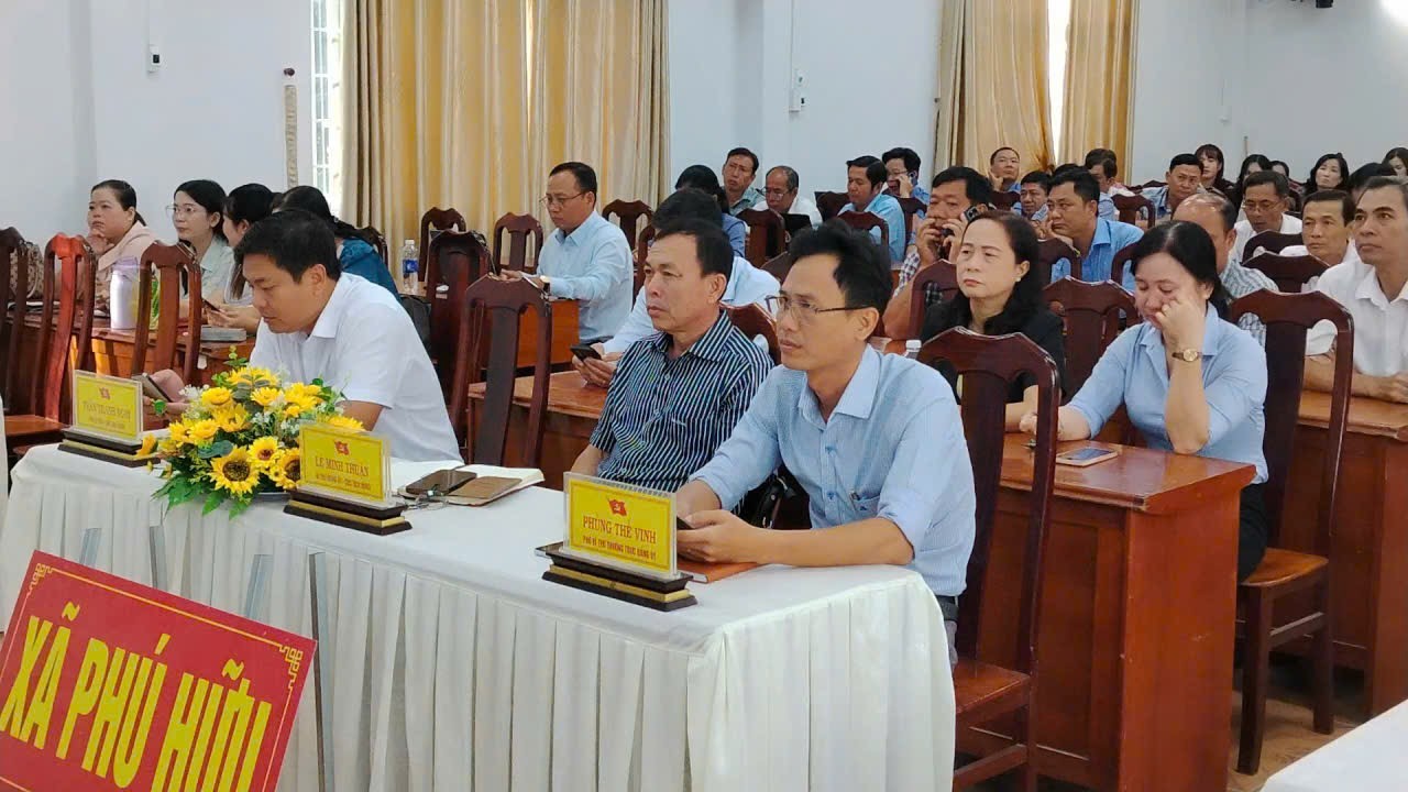 Lãnh đạo xã Phú Hữu tham dự hôi nghị tập huấn tại điểm cầu xã
