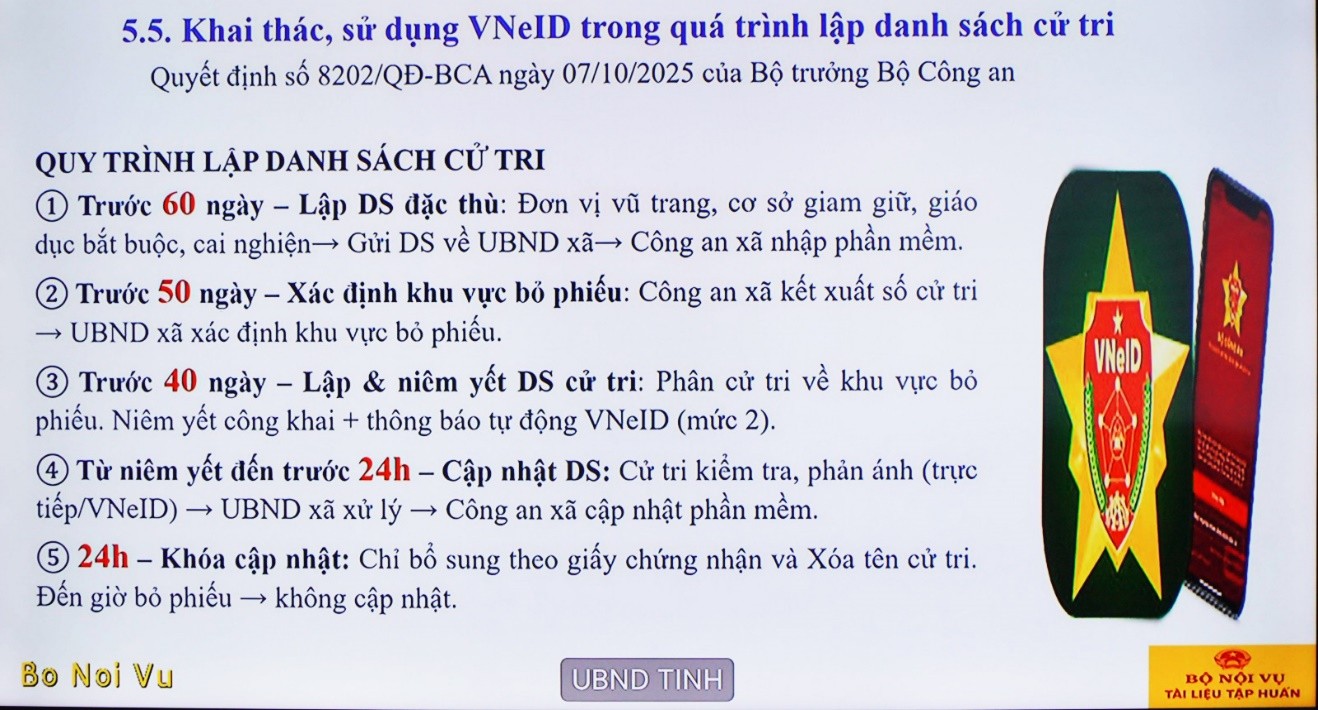 Hướng dẫn về khai thác, sử dụng cơ sở dữ liệu quốc gia về dân cư và ứng dụng định danh quốc gia (VNeID) trong quá trình lập danh sách cử tri