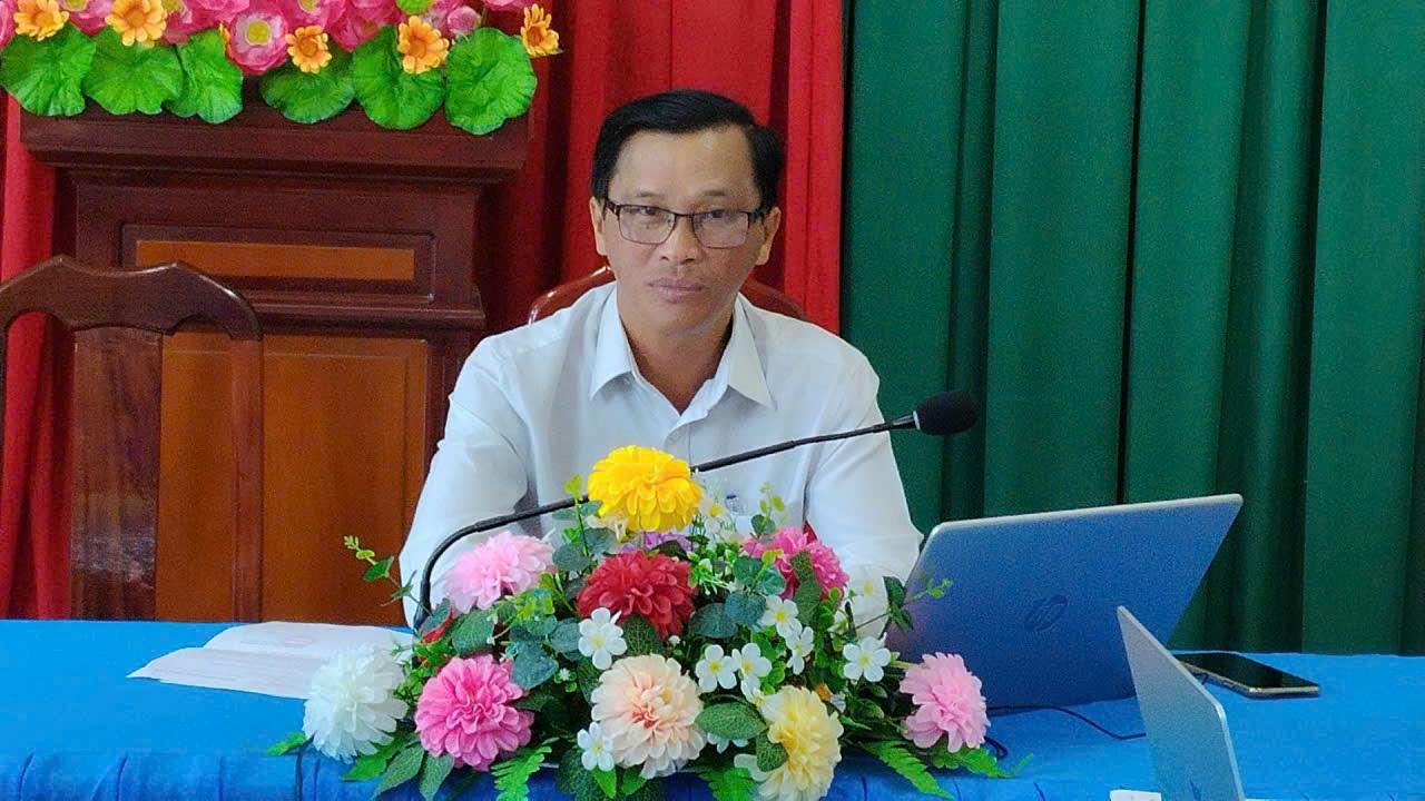 Ông Đào Văn Phi, Phó Chủ tịch UBND xã Phú Hữu dự hội nghị tại điểm cầu xã
