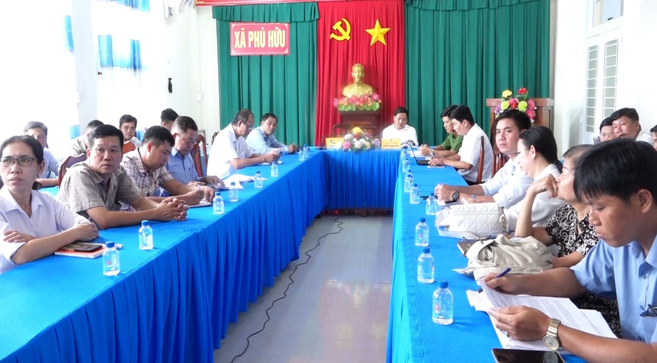 Các đại biểu tham dự hội nghị tai điểm cầu xã Phú Hữu