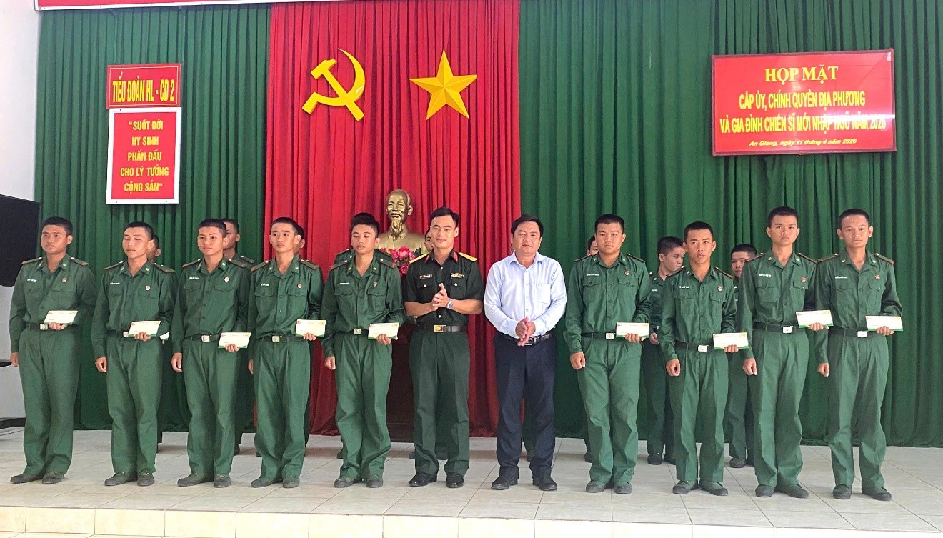 Dịp này, lãnh đạo xã Phú Hữu đã tặng quà cho các thanh niên của xã nhập ngũ năm 2026 tại Tiểu đoàn Huấn luyện – Cơ động 2, Ban Chỉ huy Bộ đội Biên phòng tỉnh An Giang.