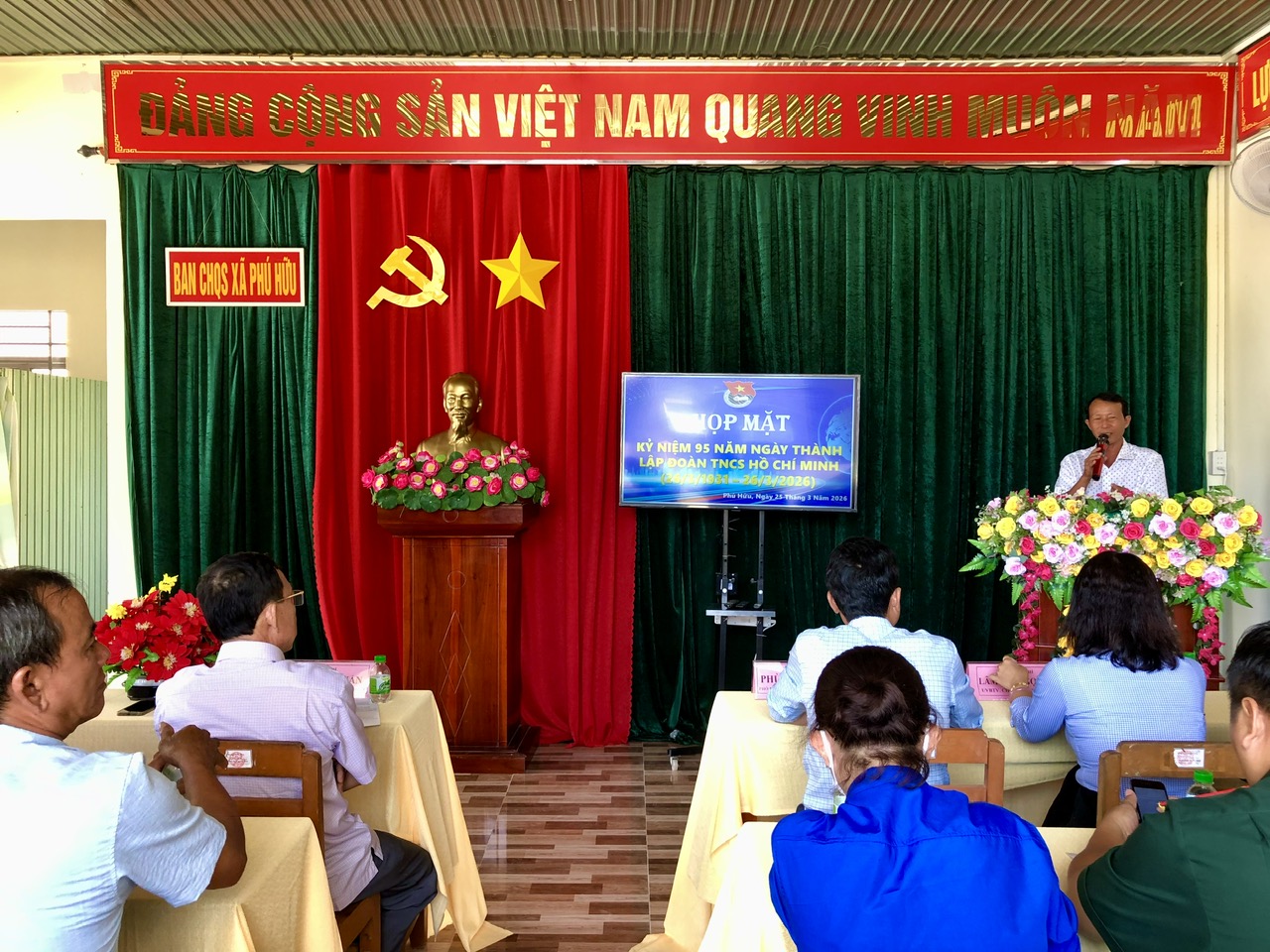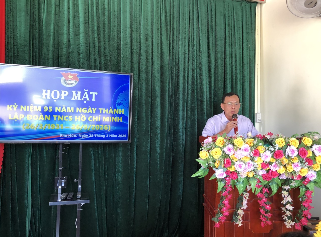 Ngày 25-3, Đoàn Thanh niên Cộng sản (TNCS) Hồ Chí Minh xã Phú Hữu tổ chức họp mặt kỷ niệm 95 năm Ngày thành lập Đoàn Thanh niên Cộng sản Hồ Chí Minh (26/3/1931 – 26/3/2026). Bí thư Đảng ủy, Chủ tịch HĐND xã Lê Minh Thuận cùng các đồng chí nguyên lãnh đạo Đoàn Thanh niên xã qua các thời kỳ; đại diện lãnh đạo Thường trực Đảng ủy – HĐND – UBND – UBMTTQVN xã; các ban ngành, đoàn thể và đoàn viên, hội viên tham dự.
