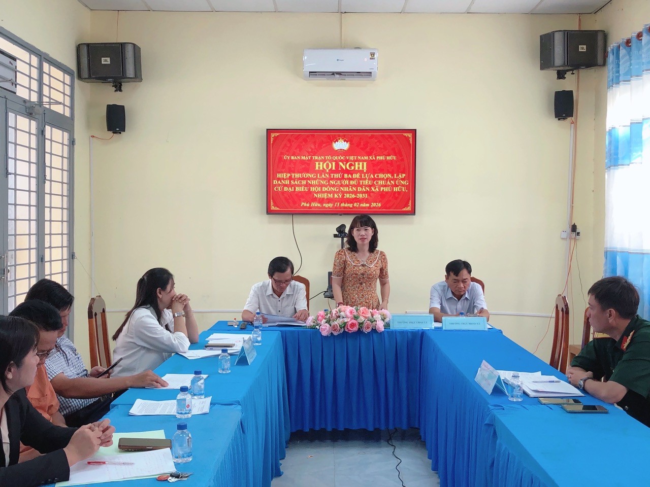 Bà Lâm Thị Ngọc Giàu, UVBTV Đảng ủy, Chủ tịch UBMTTQVN xã Phú Hữu chia sẻ, cùng với tuyên truyền, quy trình hiệp thương, giới thiệu người ứng cử đại biểu HĐND xã được Ban Thường trực UBMTTQVN xã thực hiện nghiêm túc, dân chủ, đúng quy định. Các bước hiệp thương được tổ chức công khai, minh bạch, bảo đảm cơ cấu, thành phần, số lượng hợp lý; chú trọng tỷ lệ nữ, người trẻ, đại diện các lĩnh vực. Việc lấy ý kiến cử tri nơi cư trú, nơi công tác đối với người được giới thiệu ứng cử được tiến hành chặt chẽ, phát huy vai trò giám sát của Nhân dân, góp phần lựa chọn những người tiêu biểu, xứng đáng.