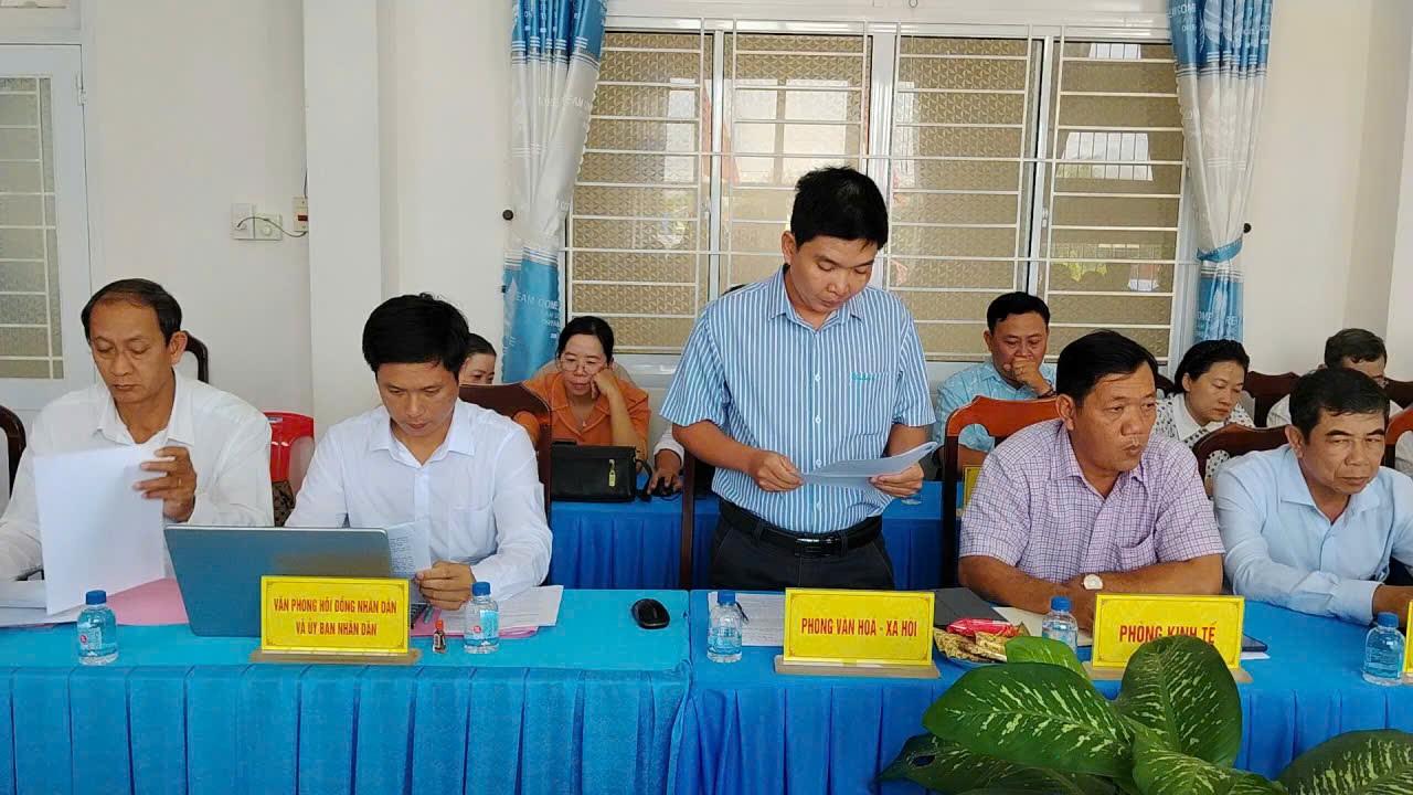 Lãnh đạo Phòng Văn hóa – Xã hội xã Phú Hữu thông qua báo cáo kết quả tổng kết bầu cử trên địa bàn xã