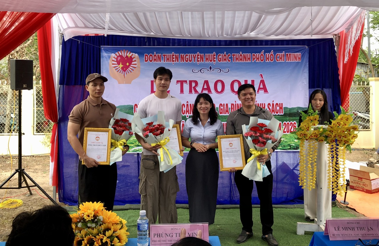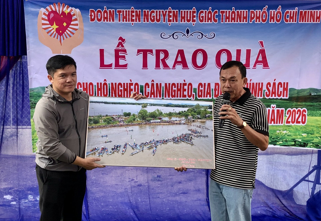 Tại buổi lễ, thay mặt địa phương, Bí thư Đảng ủy, Chủ tịch HĐND xã Phú Hữu Lê Minh Thuận tặng quà lưu niệm cùng lời cảm ơn sâu sắc đến các mạnh thường quân, các nhà hảo tâm của đoàn thiện nguyện Huệ Giác đã chung tay cùng với địa phương thực hiện công tác an sinh xã hội chăm lo đời sống Nhân dân, với những phần quà Tết ý nghĩa sẽ giúp cho người dân Phú Hữu nói chung và các hộ nghèo, hộ cận nghèo, hộ có hoàn cảnh khó khăn nói riêng có thêm điều kiện vui xuân đón Tết Bính Ngọ 2026 thêm ấm áp, trọn vẹn.