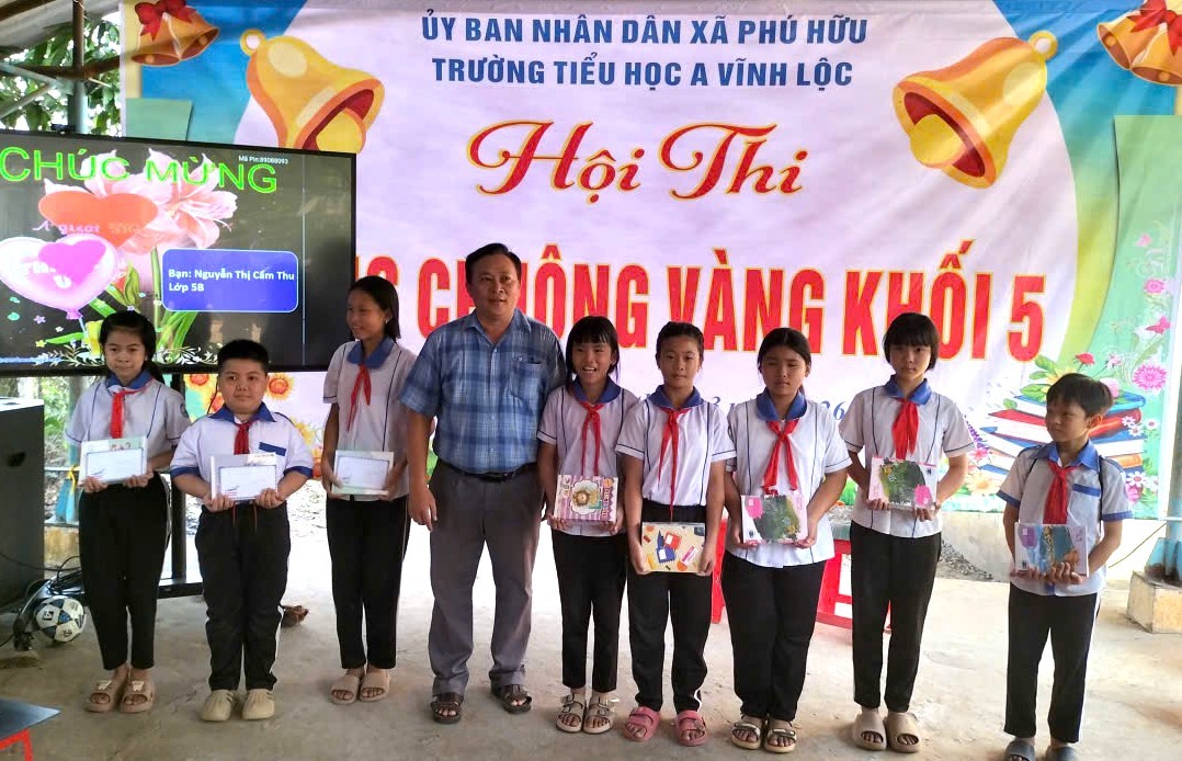 Thầy La Công Chức, Hiệu trưởng Trường Tiểu học A Vĩnh Lộc trao giải cho các thí sinh đạt thành tích xuất sắc trong hội thi