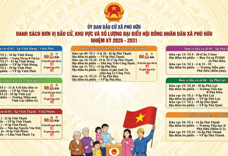 DANH SÁCH ĐƠN VỊ BẦU CỬ, KHU VỰC, ĐỊA ĐIỂM VÀ SỐ LƯỢNG ĐẠI BIỂU HỘI ĐỒNG NHÂN DÂN XÃ PHÚ HỮU NHIỆM KỲ 2026 - 2031 02/03/2026 DANH SÁCH ĐƠN VỊ BẦU CỬ, KHU VỰC, ĐỊA ĐIỂM VÀ SỐ LƯỢNG ĐẠI BIỂU HỘI ĐỒNG NHÂN DÂN XÃ PHÚ HỮU NHIỆM KỲ 2026 - 2031 Read more