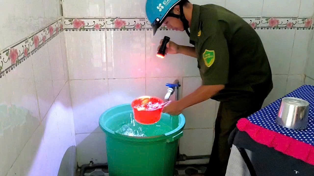Kiểm tra dụng cụ chứa nước, diệt lăng quăng phòng bệnh sốt xuất huyết