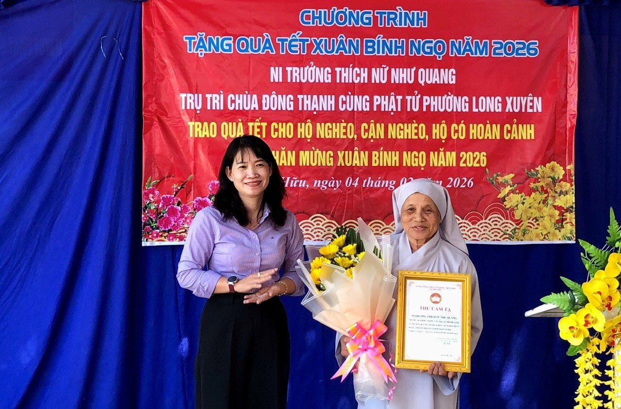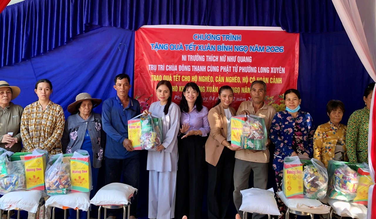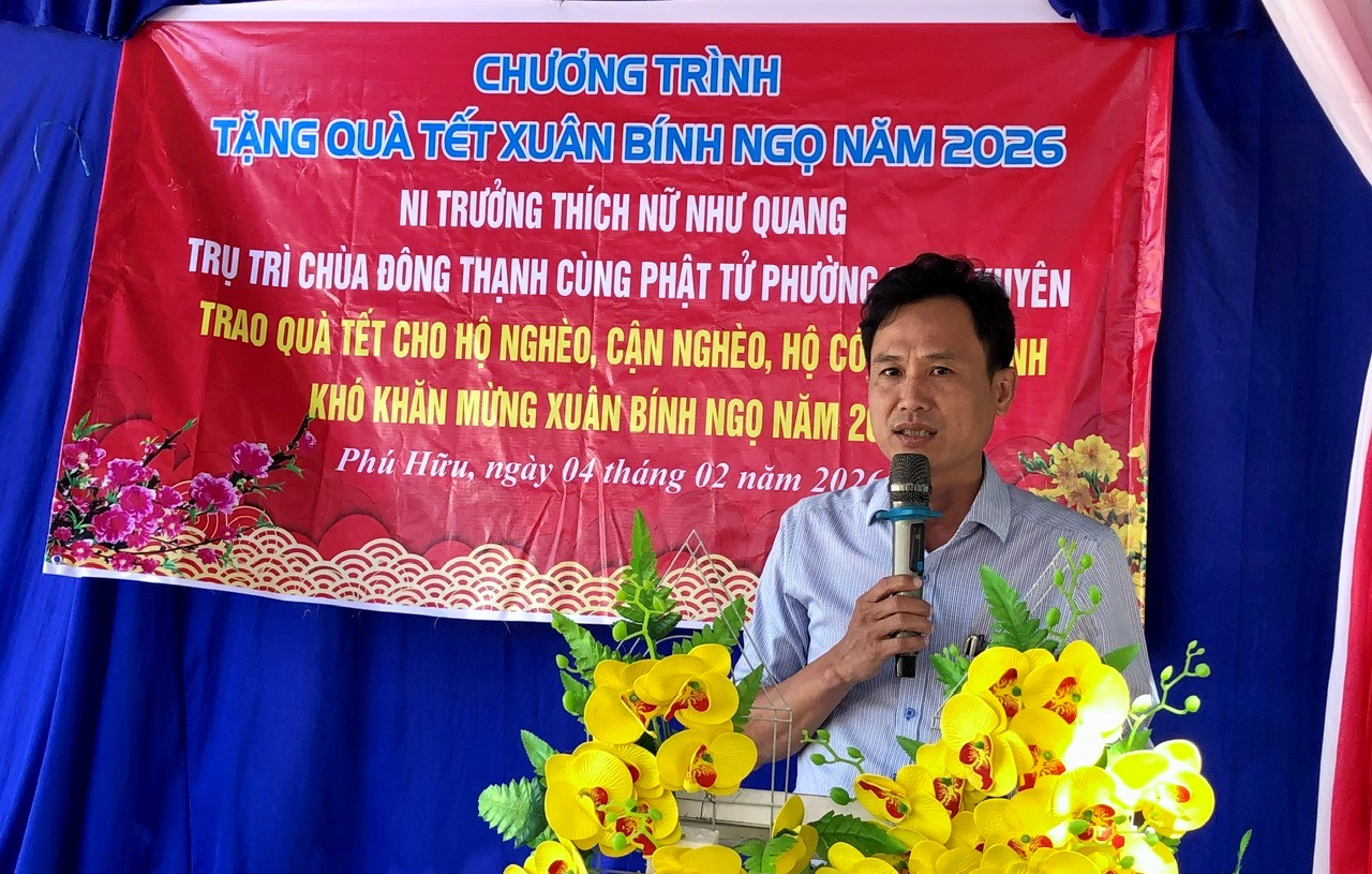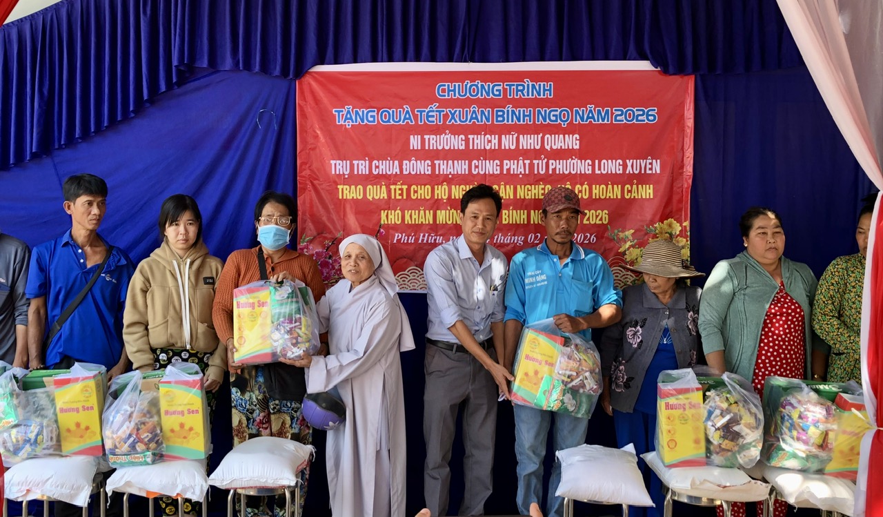 Sáng 4/2, Đoàn thiện nguyện do Ni trưởng Thích Nữ Như Quang, Trụ trì chùa Đông Thạnh cùng phật tử phường Đông Xuyên (tỉnh An Giang) đến trao tặng 100 phần quà Tết cho hộ nghèo, hộ cận nghèo, hộ có hoàn cảnh khó khăn trên địa bàn xã Phú Hữu. Phó Bí thư Thường trực Đảng ủy xã Phùng Thế Vinh; Ủy viên Ban Thường vụ Đảng ủy, Chủ tịch UBMTTQVN xã Phú Hữu Lâm Thị Ngọc Giàu đến dự.