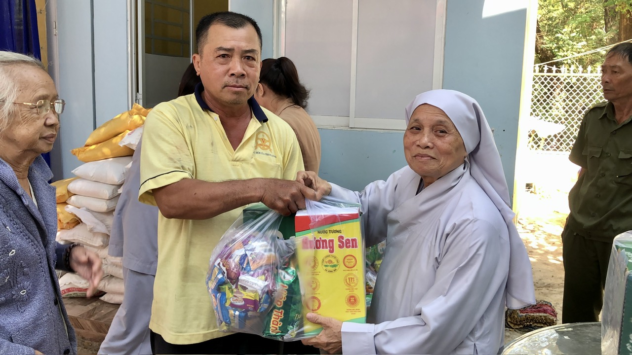 Mỗi phần quà được trao trị giá 400.000 đồng, gồm: gạo, mì gói và một số nhu yếu phẩm khác, tổng số tiền trao quà 40 triệu đồng do Ni trưởng Thích Nữ Như Quang, Trụ trì chùa Đông Thạnh vận động hỗ trợ.