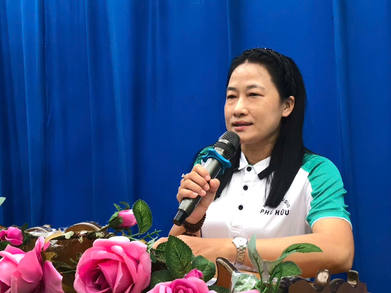 Cô Trần Thị Hà Giang, Hiệu trưởng trường Mẫu giáo Phú Hữu chia sẻ về ý nghĩa của buổi sinh hoạt chuyên đề