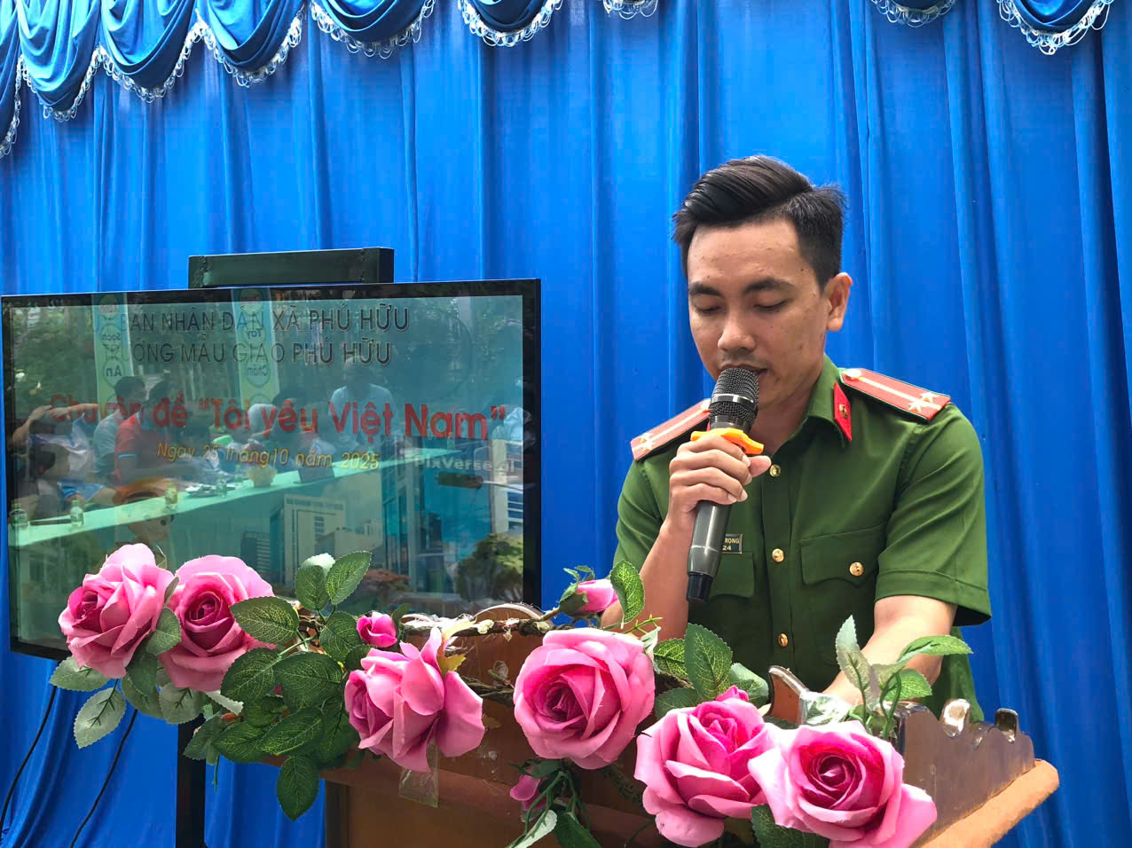Dịp này, nhà trường cũng phối hợp với Công an xã Phú Hữu tuyên truyền về một số luật giao thông đường bộ cũng như một số kỹ năng phòng, chống đuối nước cho trẻ trong mùa lũ.