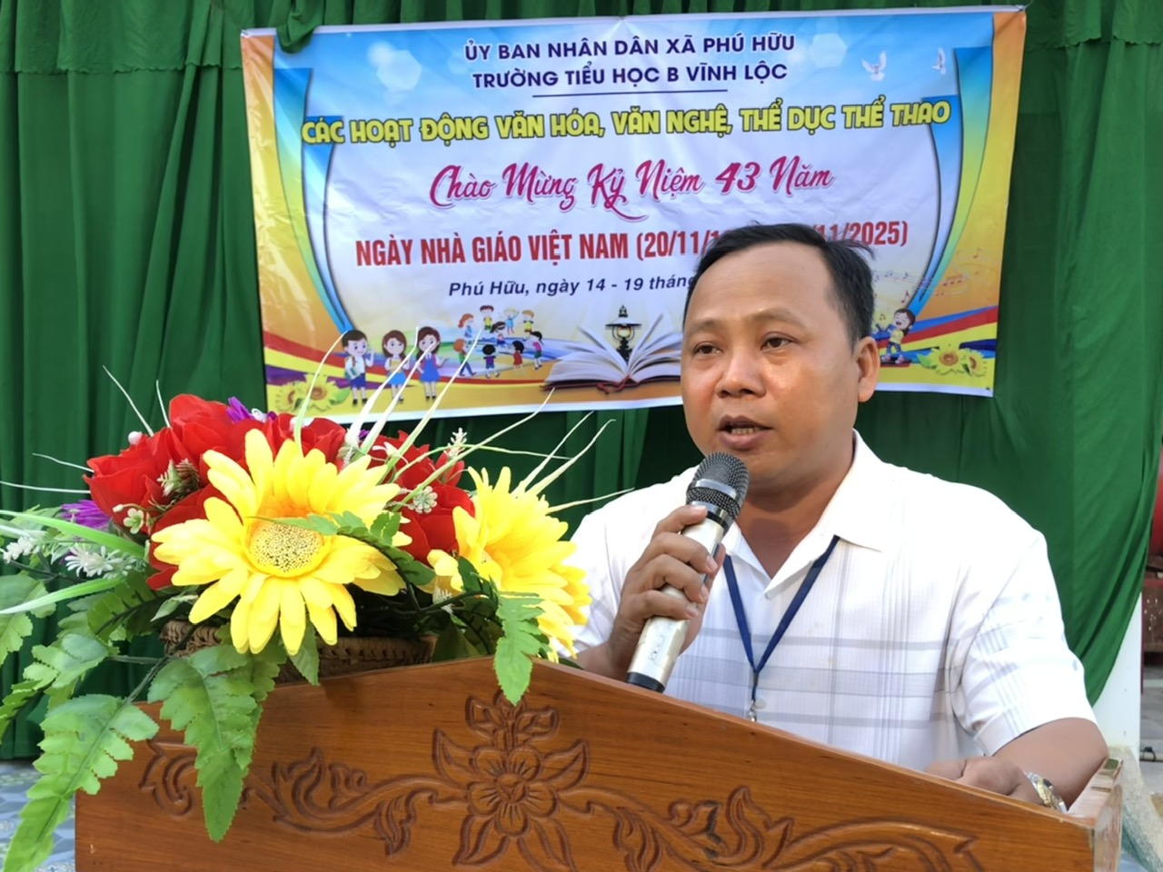 Thầy La Công Hậu, Hiệu trưởng Trường Tiểu học B Vĩnh Lộc phát biểu khai mạc