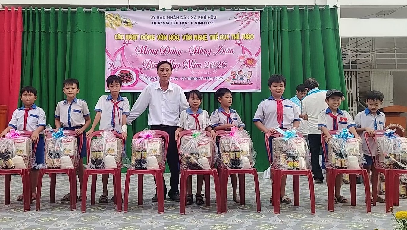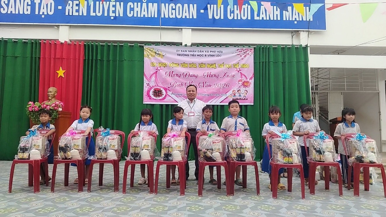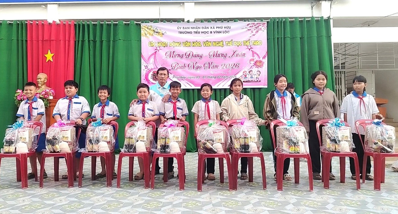 Trong không khí của những ngày giáp Tết Nguyên đán Bính Ngọ 2026, chiều 06/2, Trường Tiểu học B Vĩnh Lộc tổ chức trao quà Tết cho 30 em học sinh có hoàn cảnh khó khăn của trường.