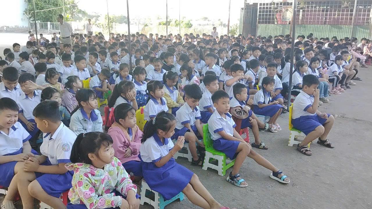 Đại biểu và cán bộ, giáo viên trường Tiểu học A Phú Hữu dự buổi tuyên truyền
