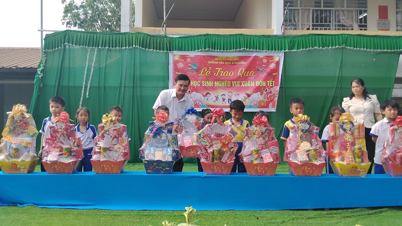 Hoạt động trao quà Tết cho học sinh hộ nghèo, học sinh có hoàn cảnh khó khăn là việc làm thường niên của Trường Tiểu học A Phú Hữu, mỗi phần quà thể hiện sự quan tâm, sẻ chia của nhà trường, phụ huynh và các mạnh thường quân trong công tác chăm lo cho học sinh, góp phần giúp các em đón Tết đầm ấm hơn, đồng thời động viên tinh thần và tiếp thêm động lực cho các em vươn lên trong học tập và rèn luyện.