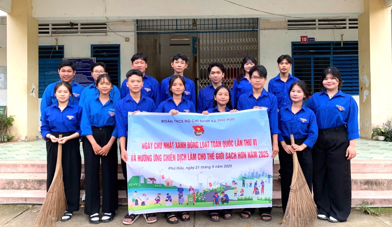 Hoạt động ra quân Ngày chủ nhật xanh lần thứ VI và hưởng úng Chiến dịch "Làm cho thế giới sạch hơn" năm 2025 của đoàn viên, thanh niên xã Phú Hữu nhằm phát huy vai trò xung kích của tuổi trẻ trong việc bảo vệ môi trường, xây dựng cảnh quan xanh - sạch - đẹp và góp phần nâng cao ý thức cộng đồng về bảo vệ môi trường, phòng chống biến đổi khí hậu và giảm thiểu tác động của thiên tai.