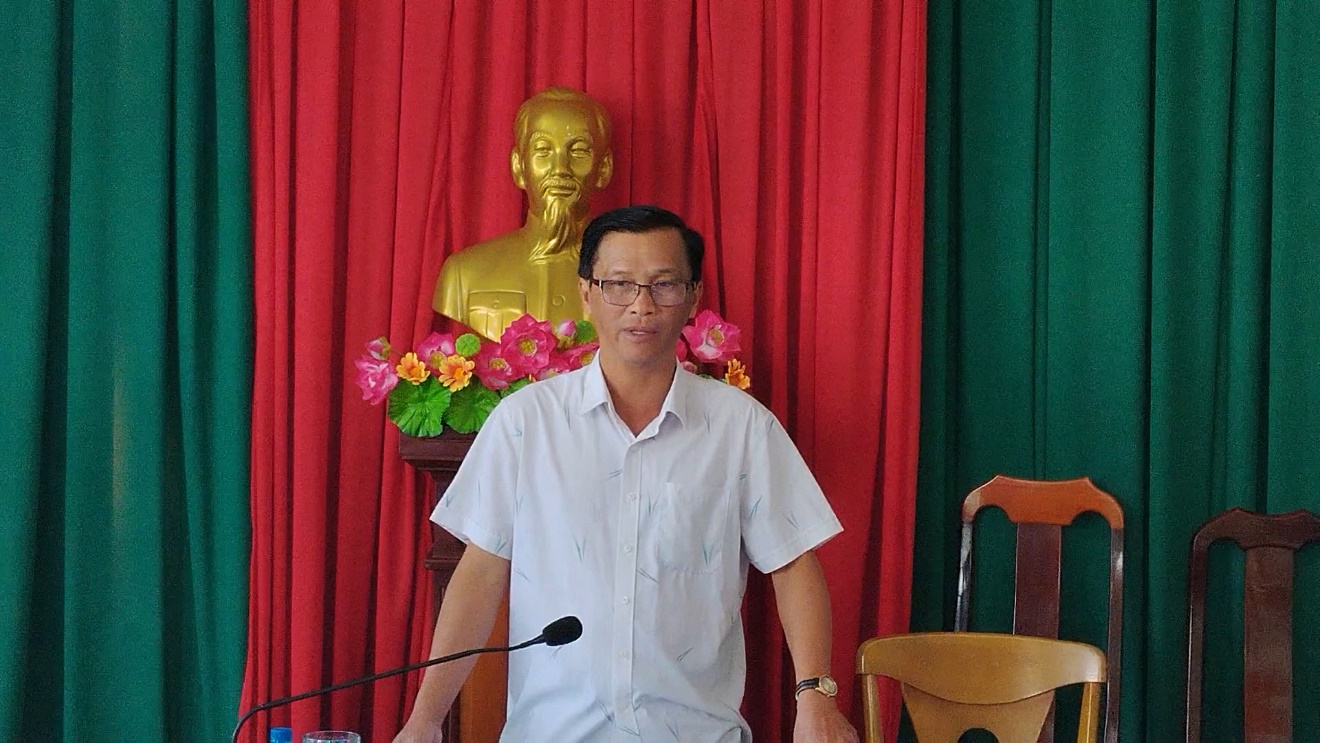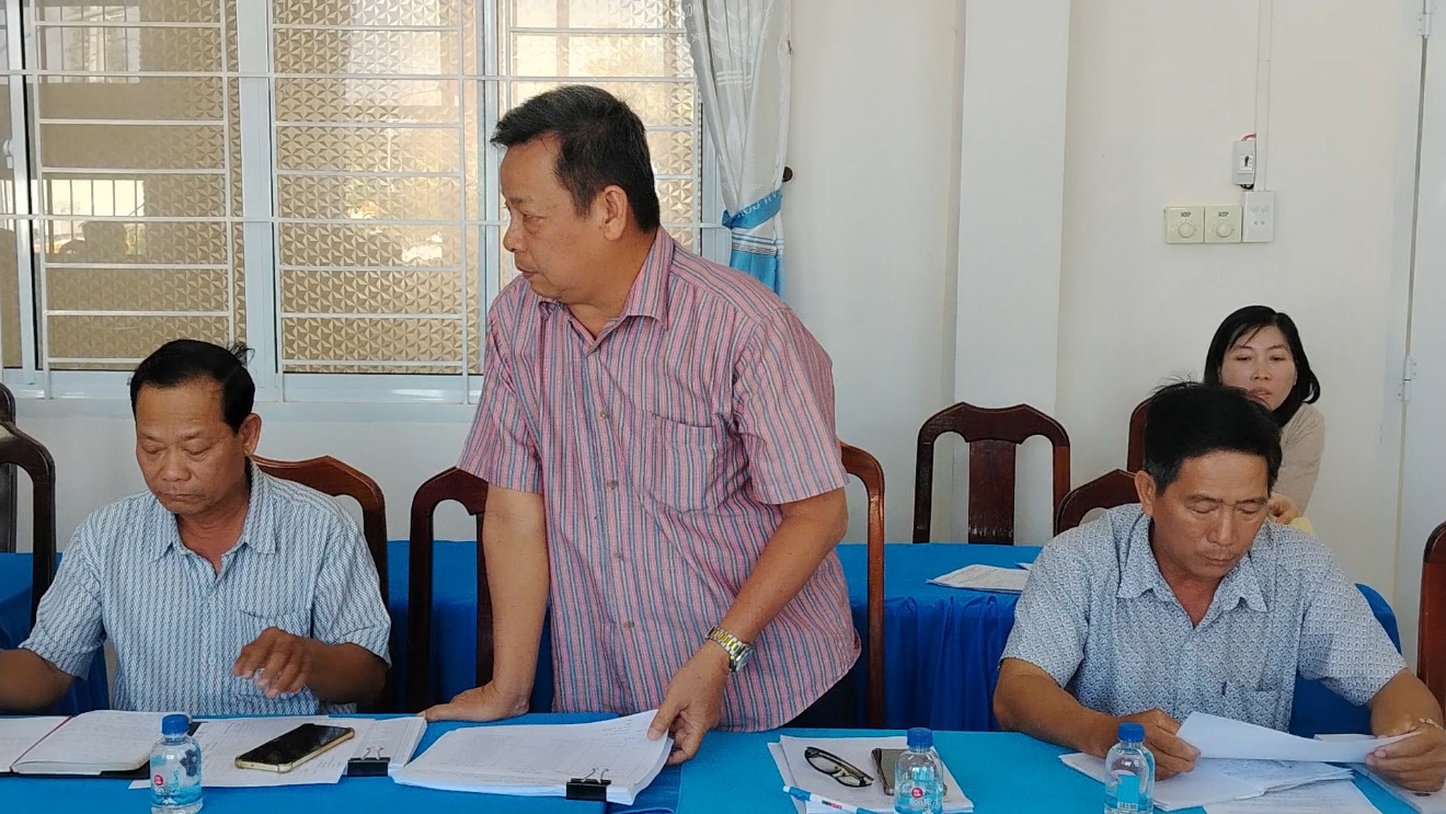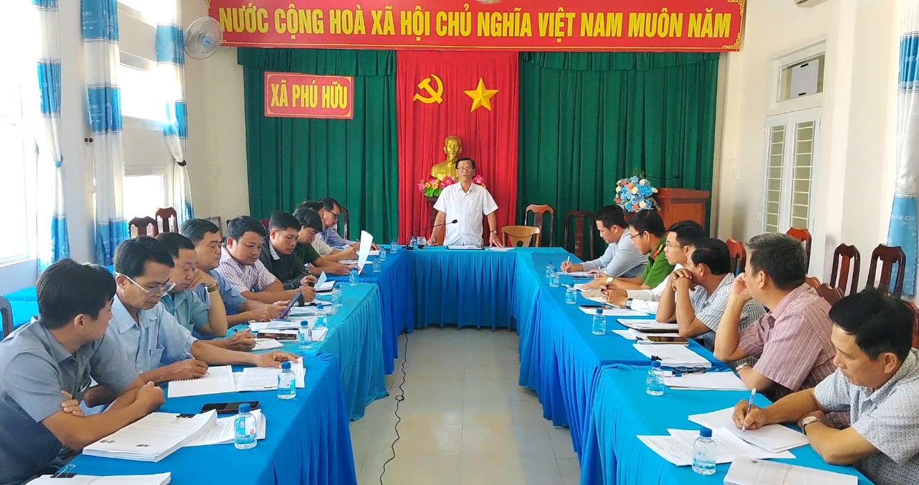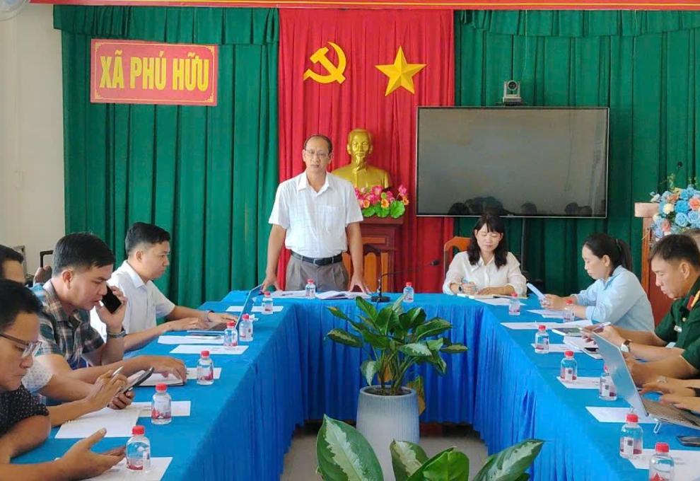 Ông Đào Văn Phi, Phó Chủ tịch UBND xã Phú Hữu phát biểu chỉ đạo ngành, các phòng chuyên môn và các ấp tại cuộc họp