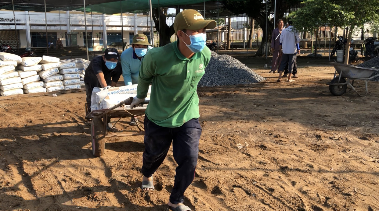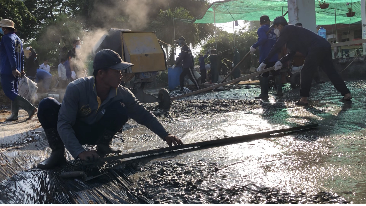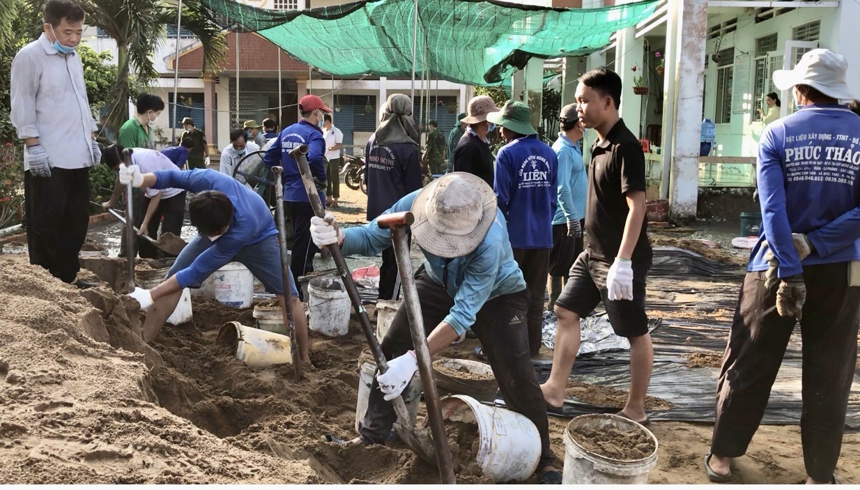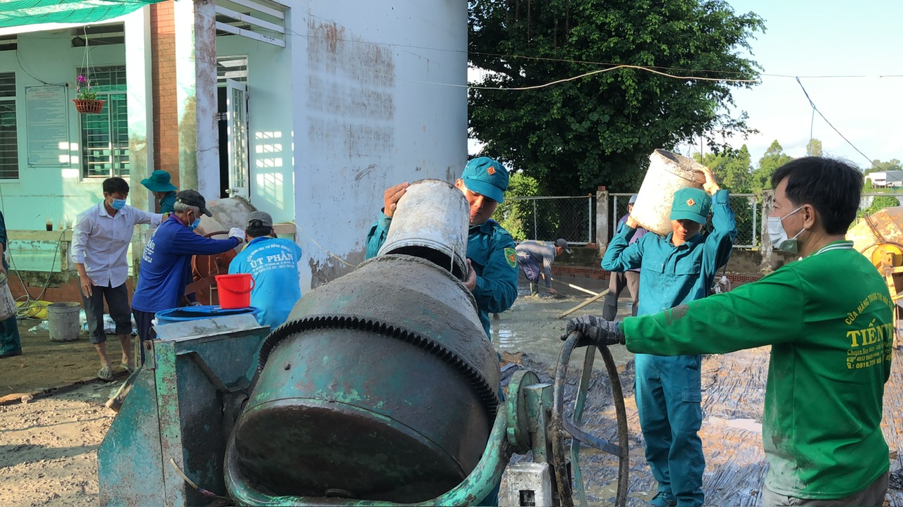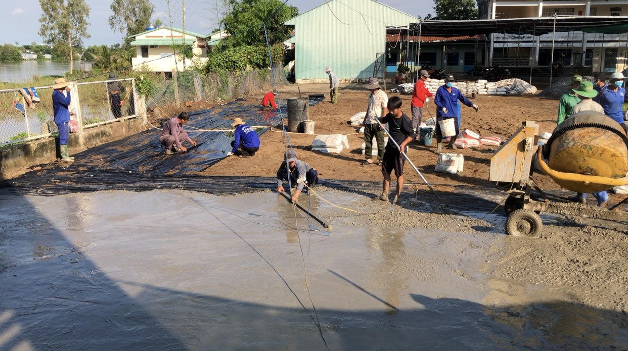 Vận động xã hội hóa đổ bê tông sân trường Tiểu học A Phú Hữu