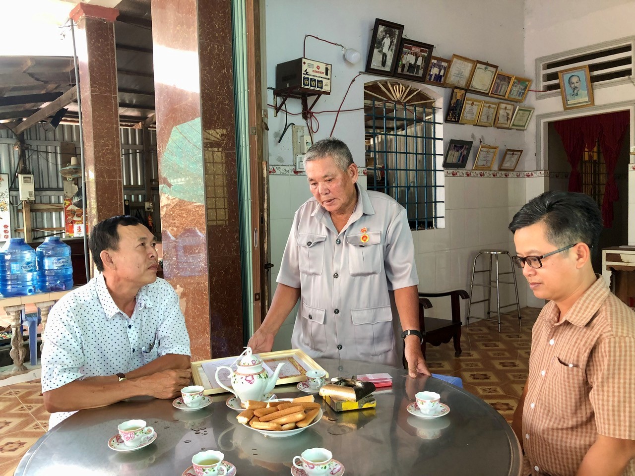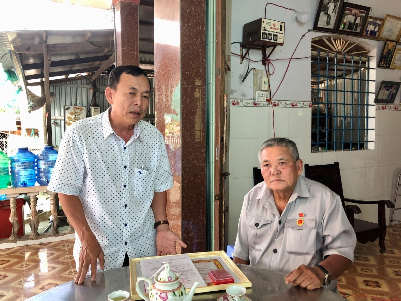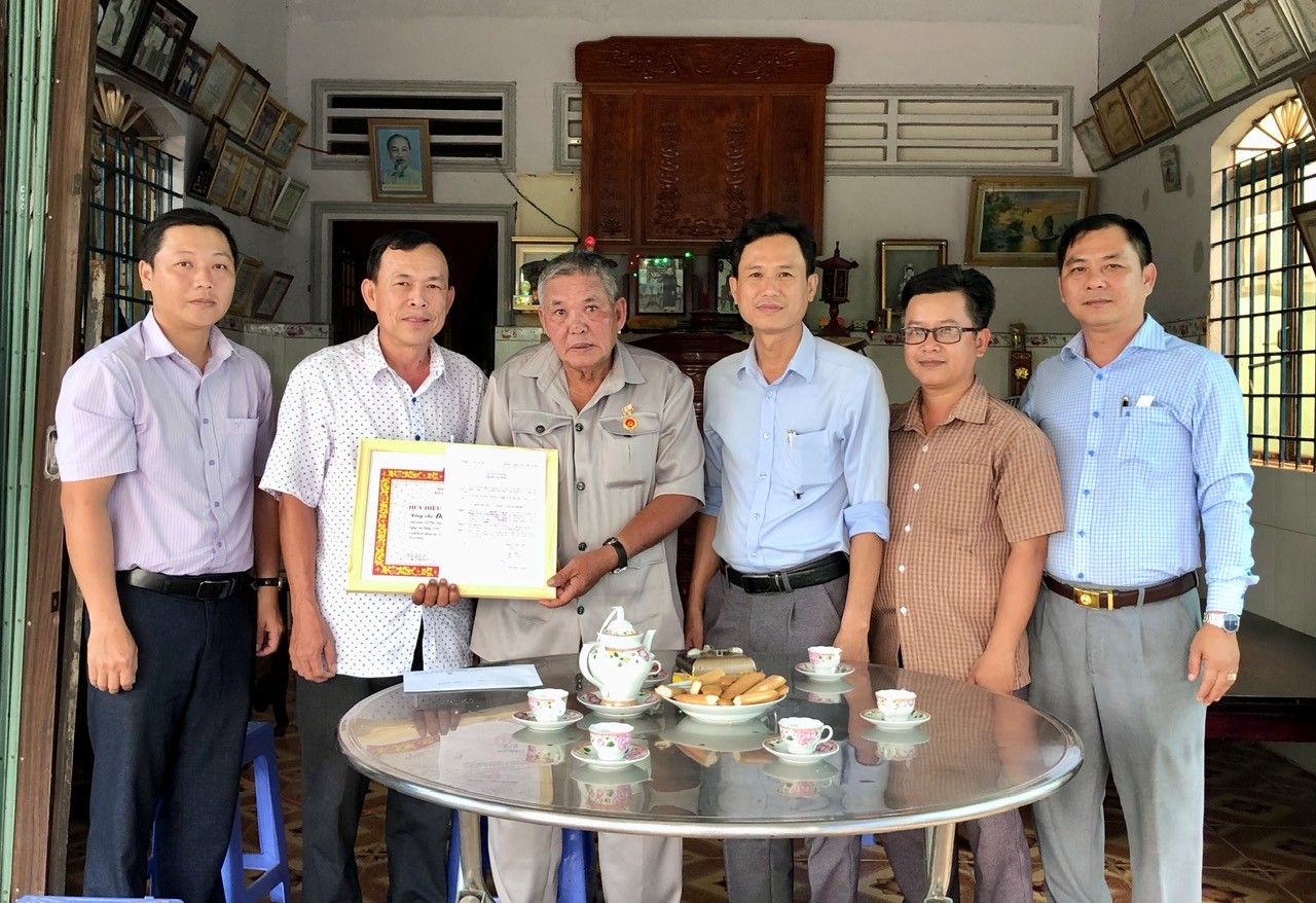Trao Huy hiệu 50 năm tuổi Đảng cho đảng viên Đặng Thanh Nông (chi bộ ấp Phú Hiệp)